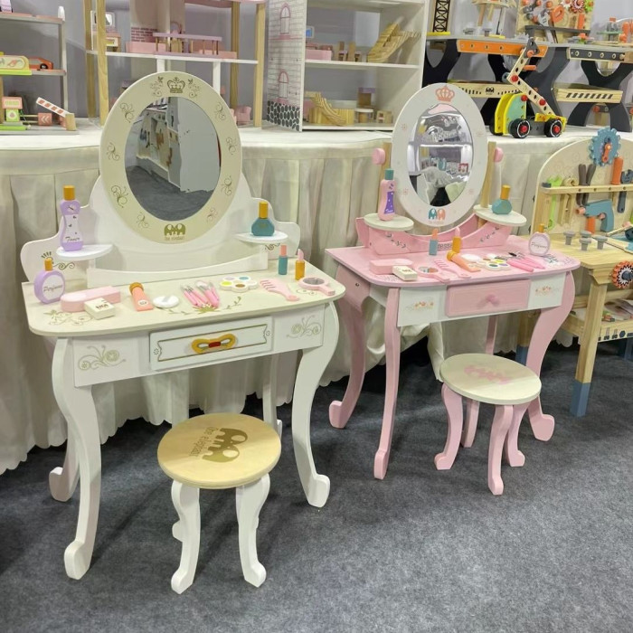 木製女孩白色梳妝台扮家家酒兒童化妝台套餐寶寶模仿美妝禮物玩具