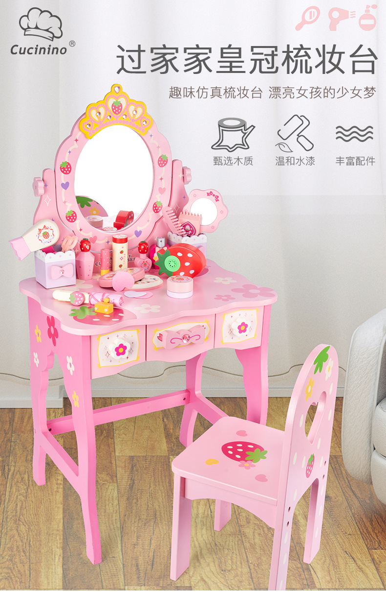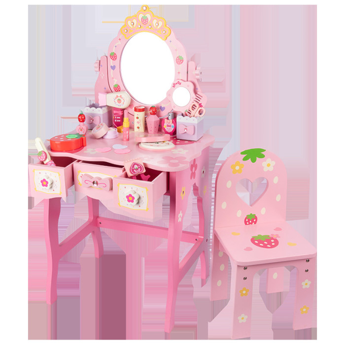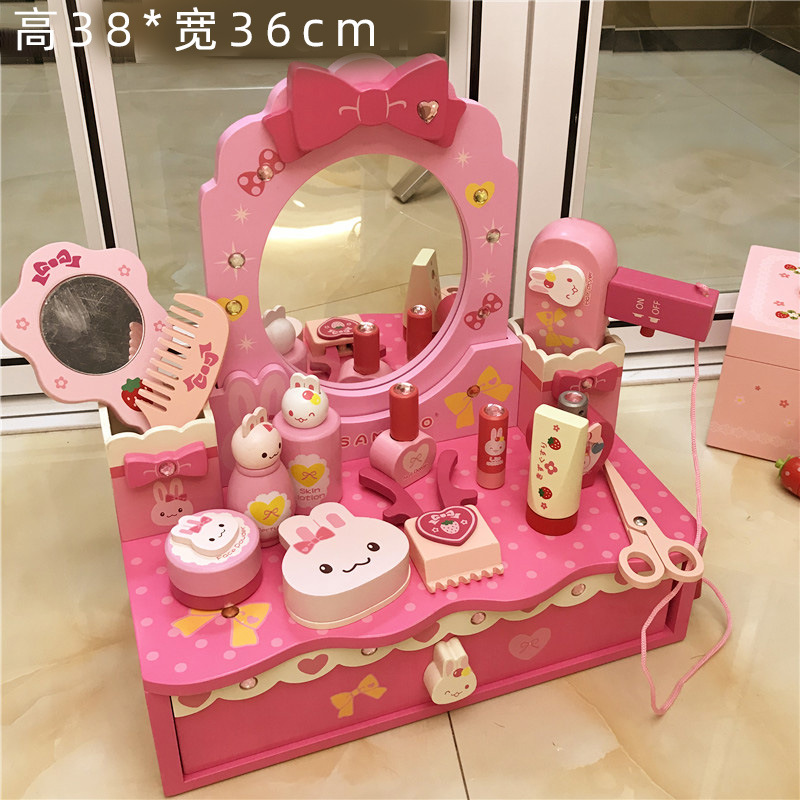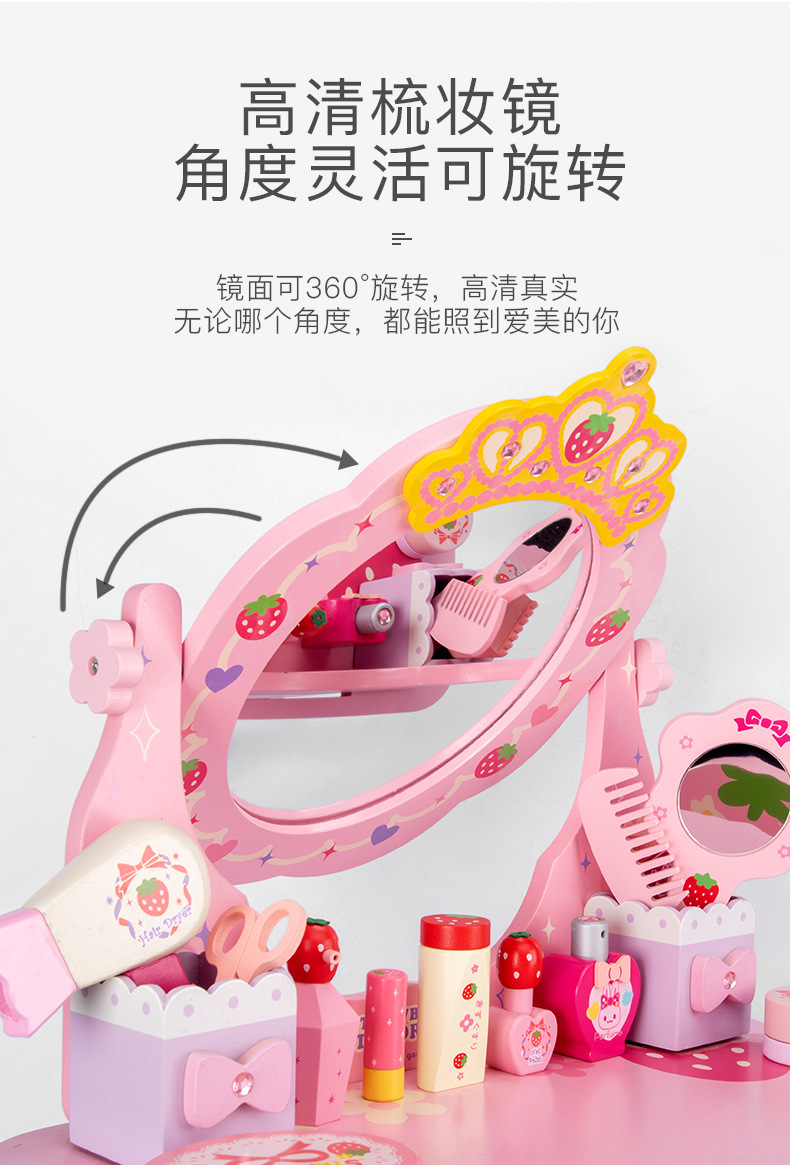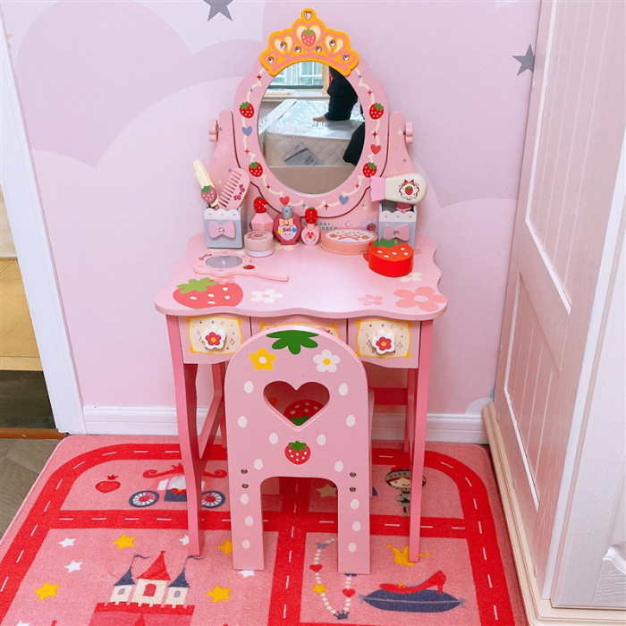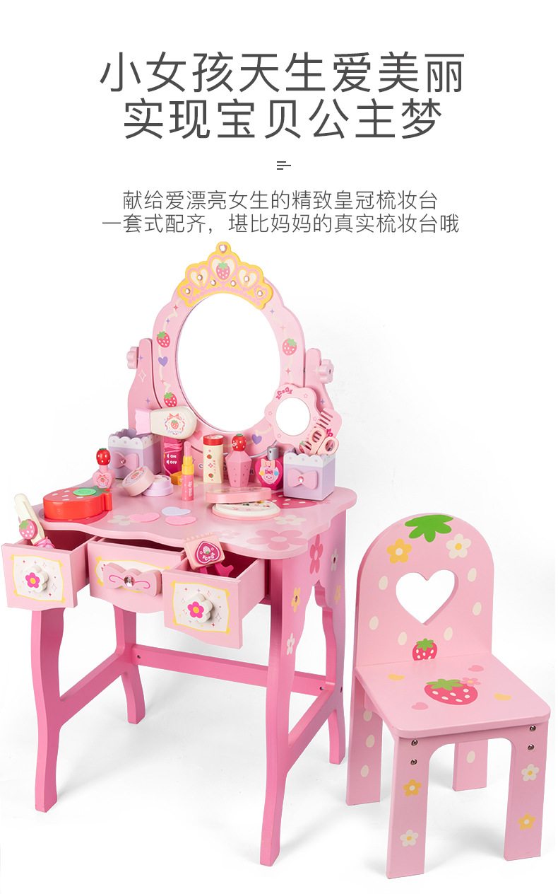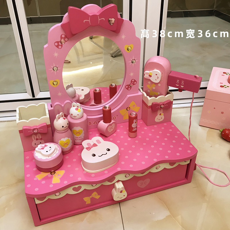 女孩兒童生日禮物仿真公主梳妝台化妝台3-4-5-6嵗扮家家酒木製玩具