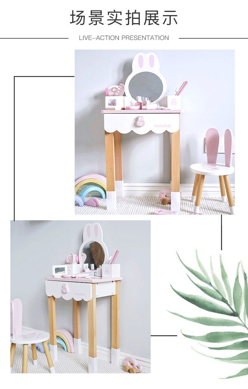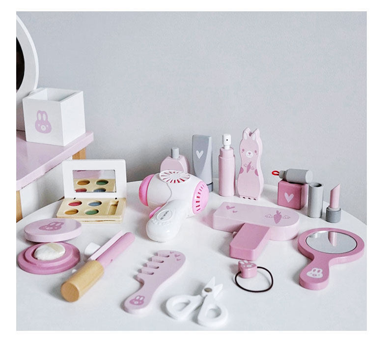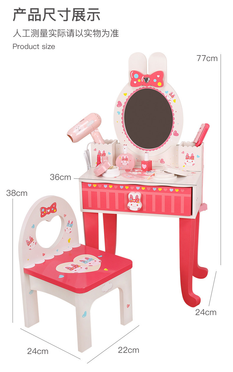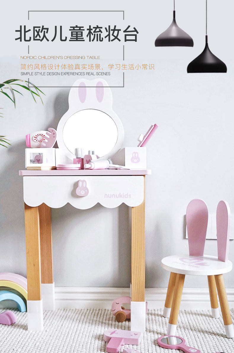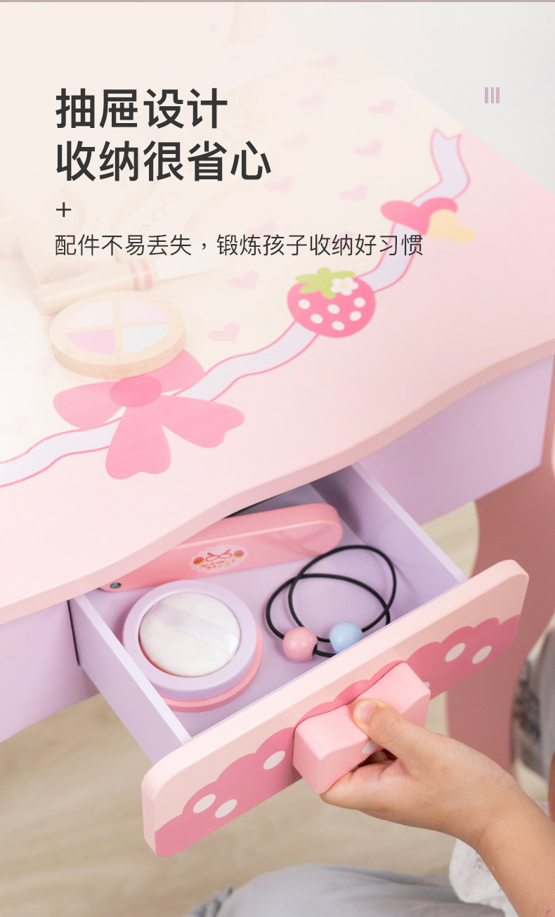 兒童粉色公主梳妝台玩具小女孩臥室化妝桌木質扮家家酒嵗6生日禮物