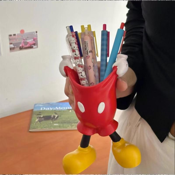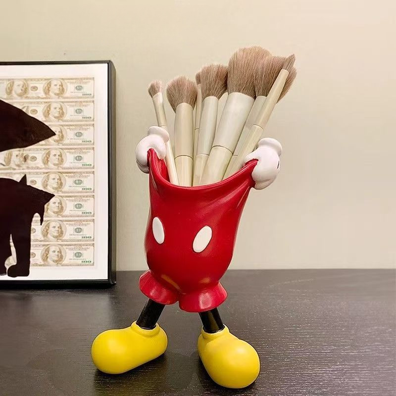 米奇臥室梳妝台毛筆眉筆收納筒化妝刷置物架學生桌面創意筆筒擺件