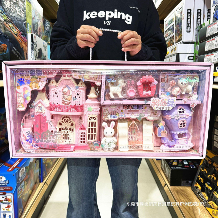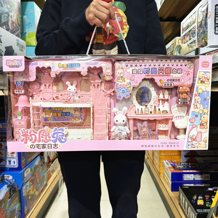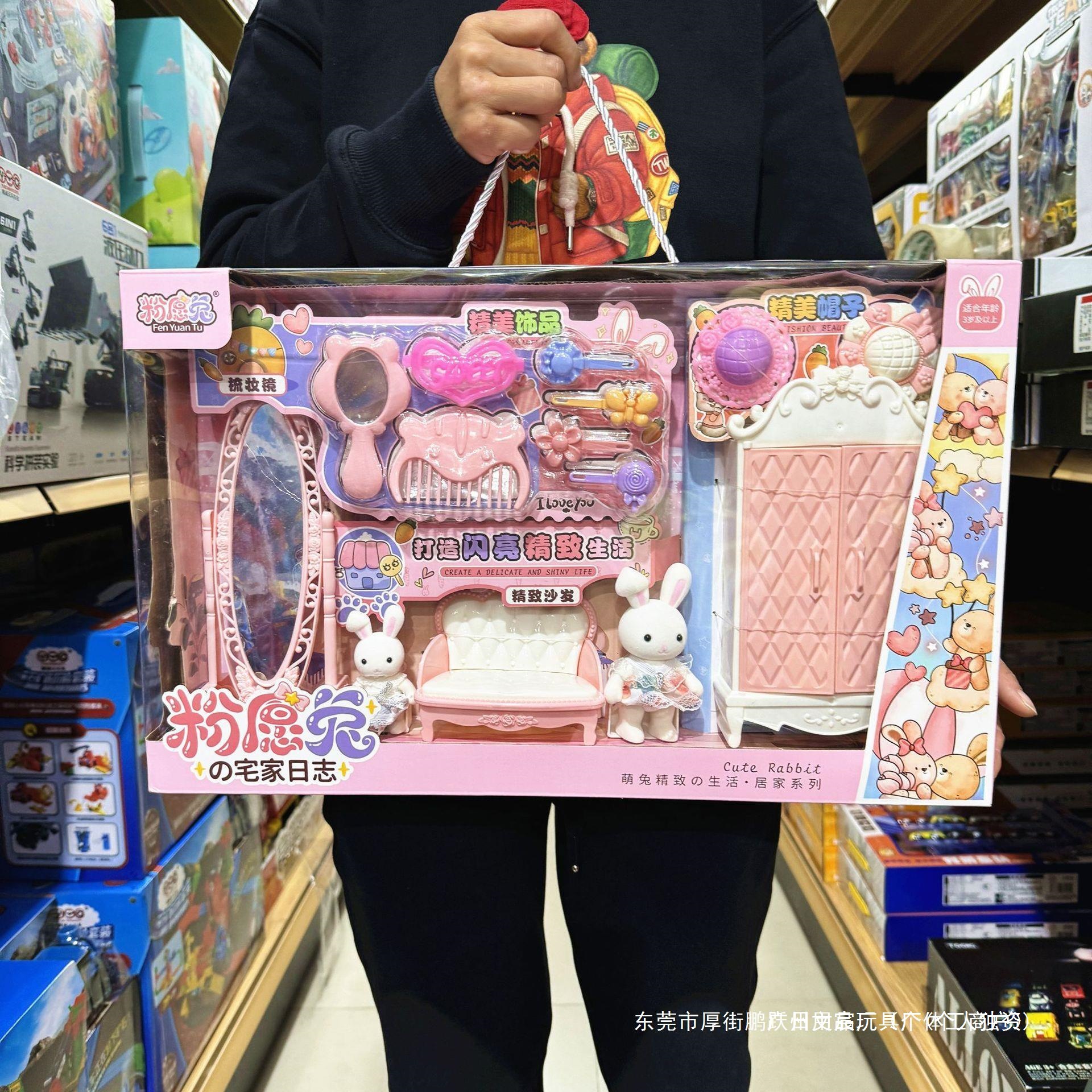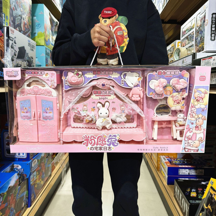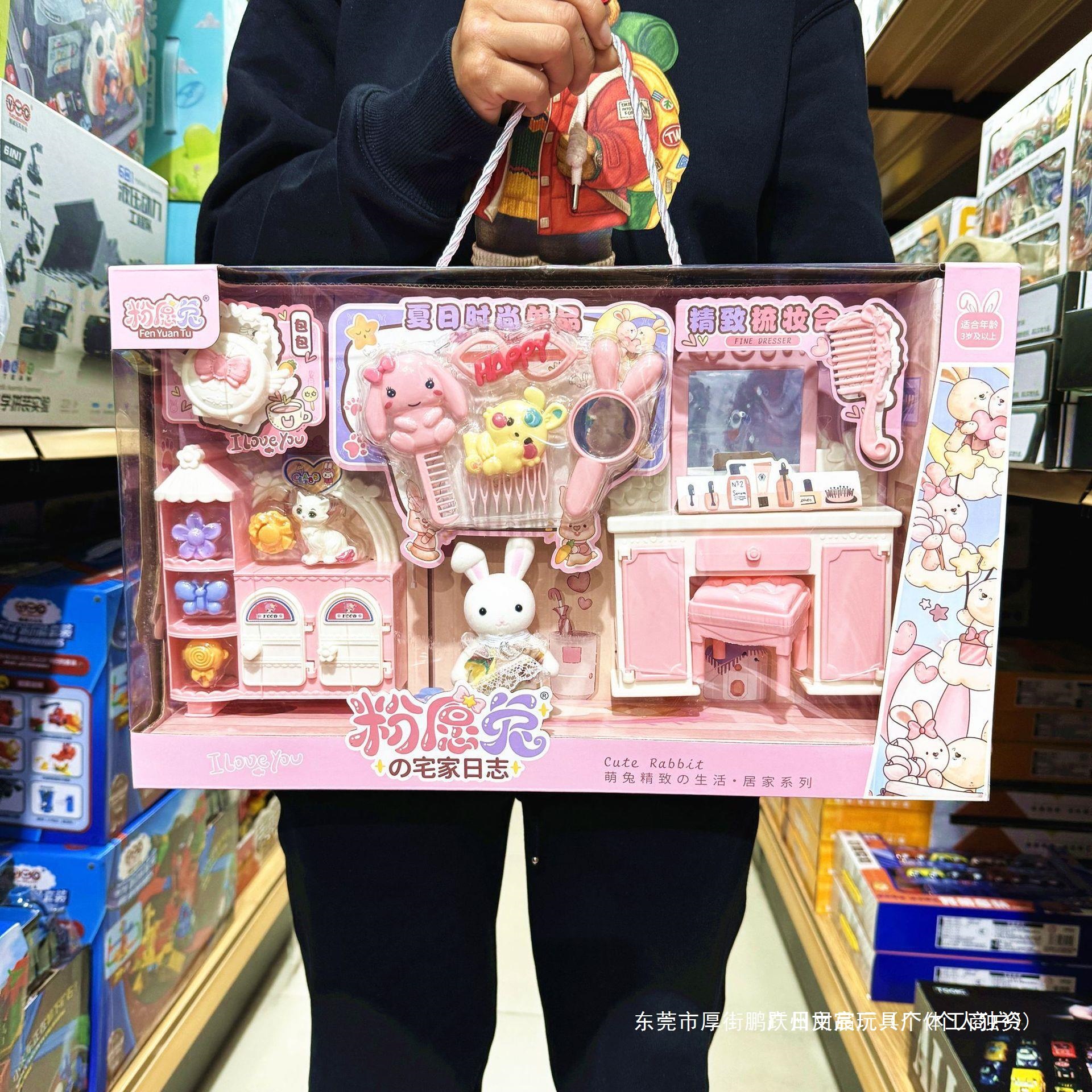 粉願兔小兔子大城堡溫馨臥室滑梯雙層床衣櫃化妝台扮家家酒兒童玩具