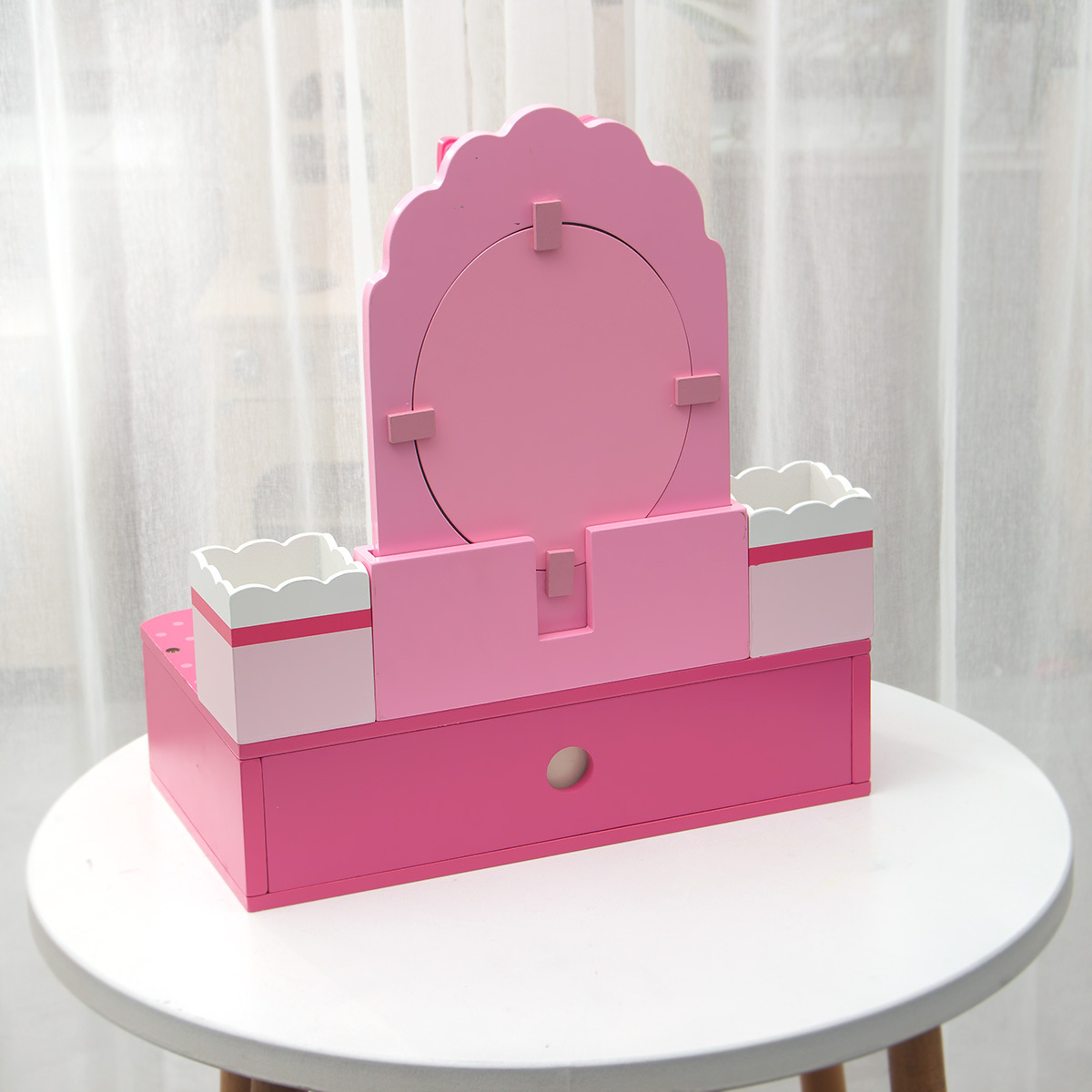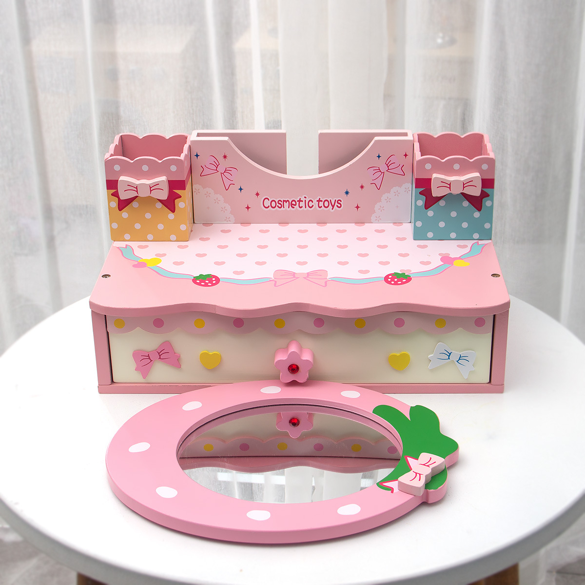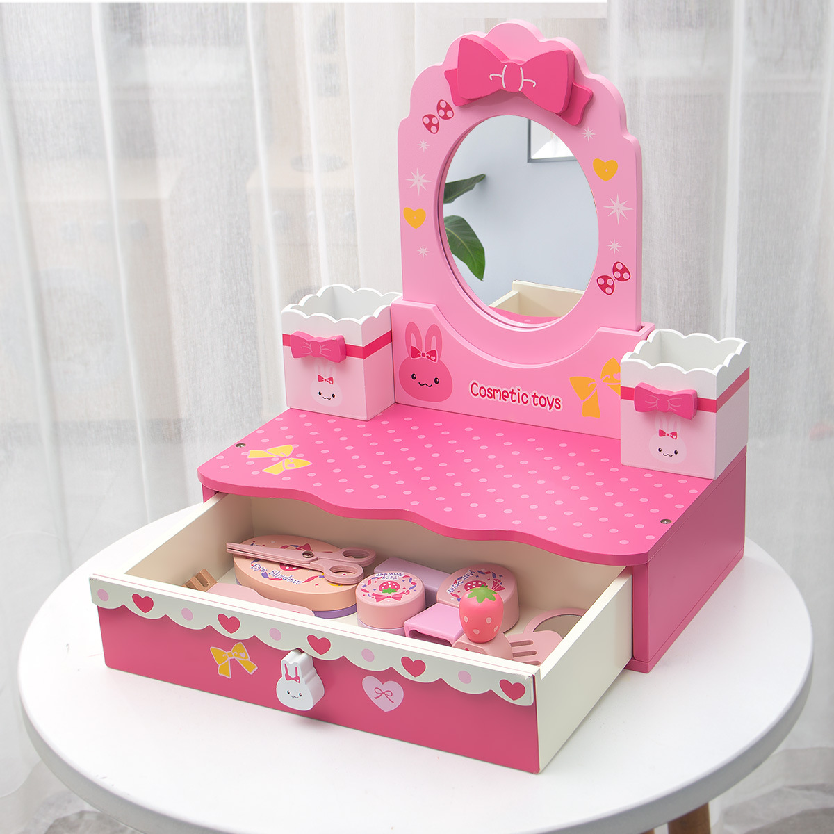 新款兒童木質化妝梳妝台公主女話粉紅玫紅色化妝品親子互動手玩具