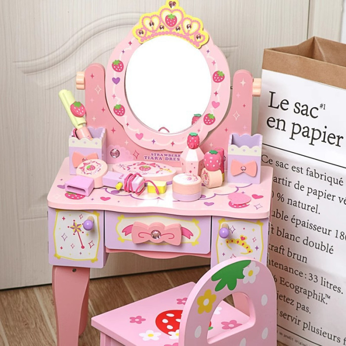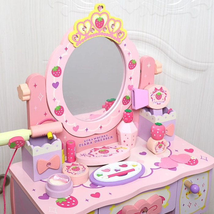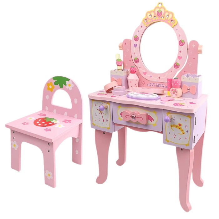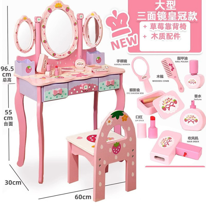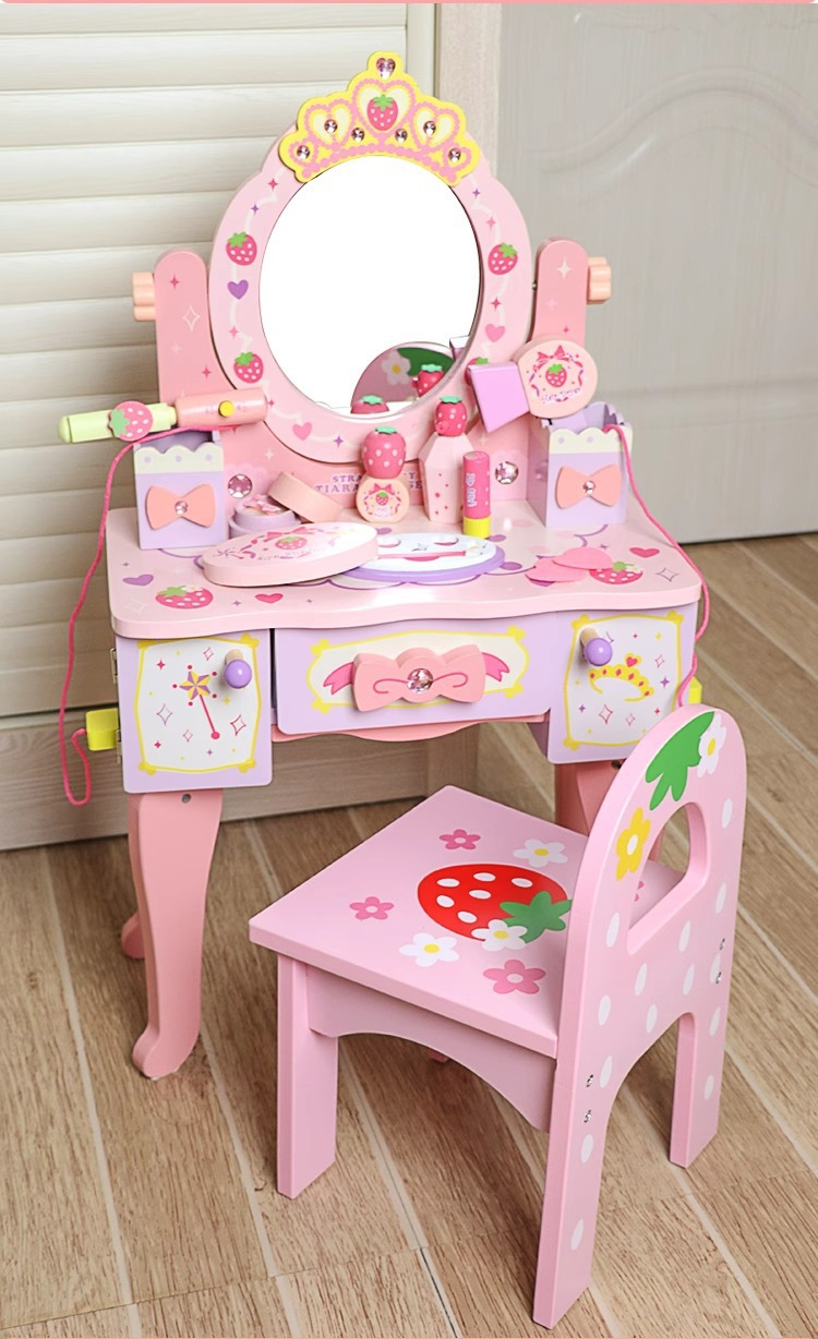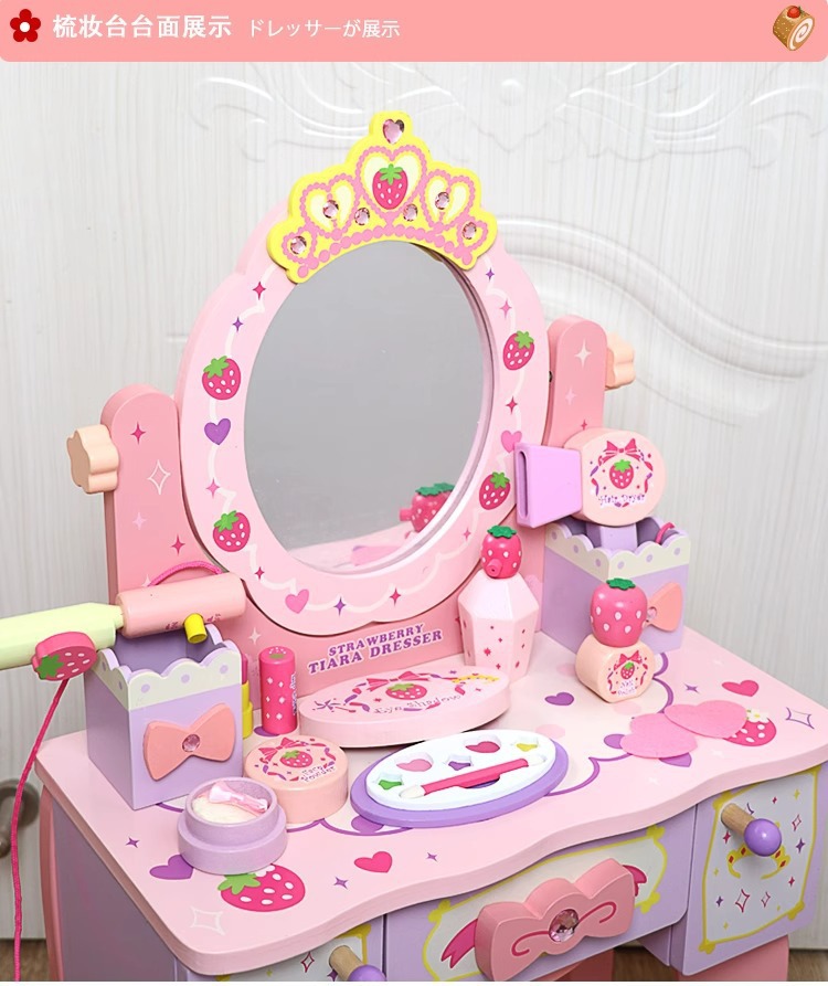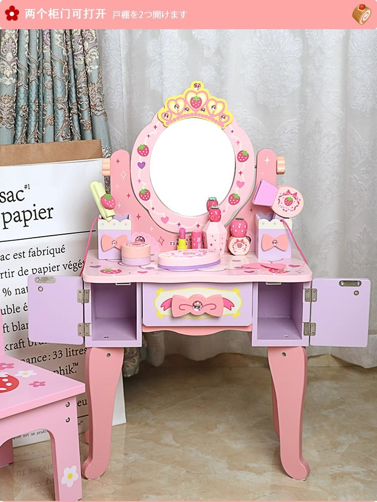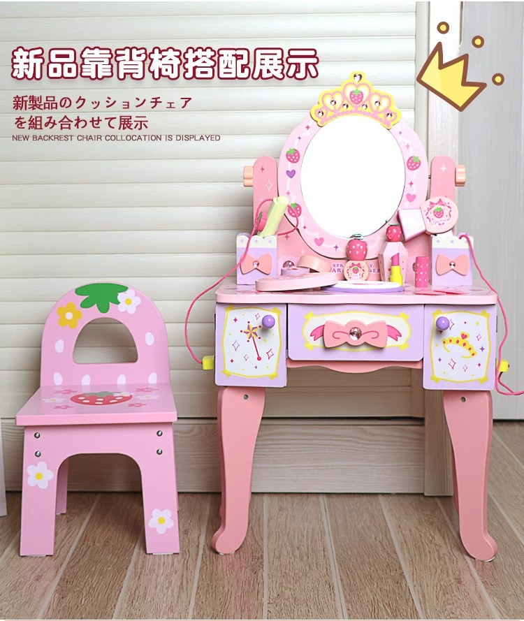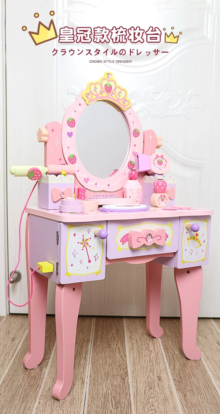 兒童木製扮家家酒角色扮演仿真皇冠梳妝台女孩小公主化妝台益智玩具