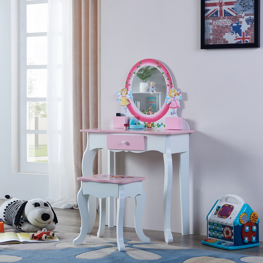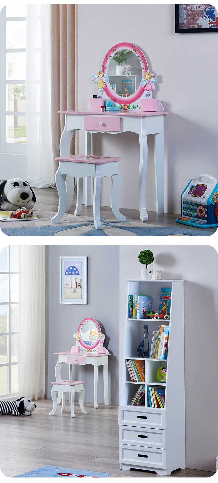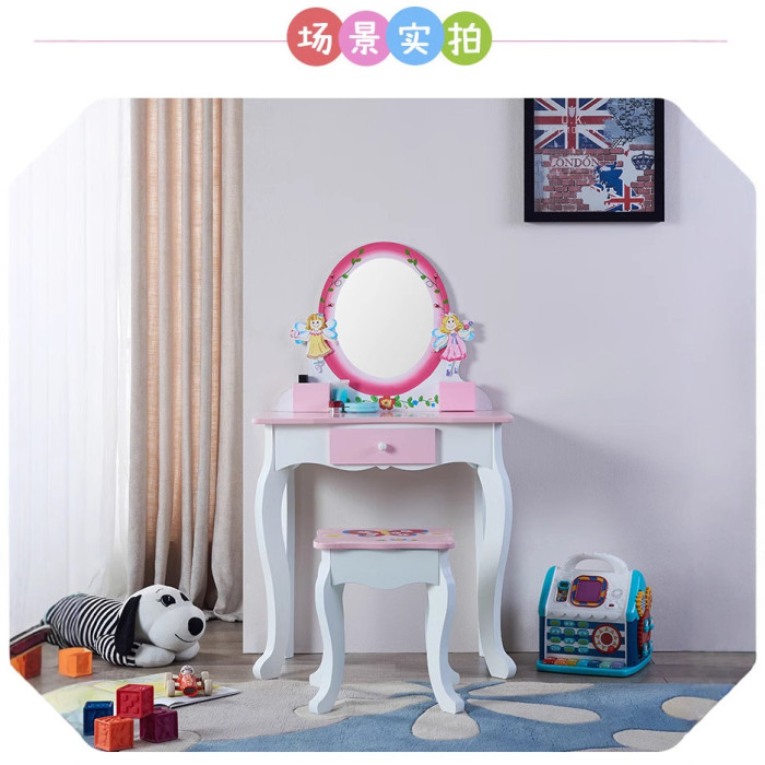 北歐風兒童木質梳妝台女孩角色扮演扮家家酒仿真化妝台玩具套裝