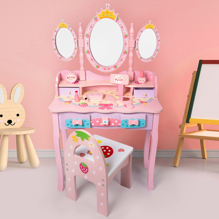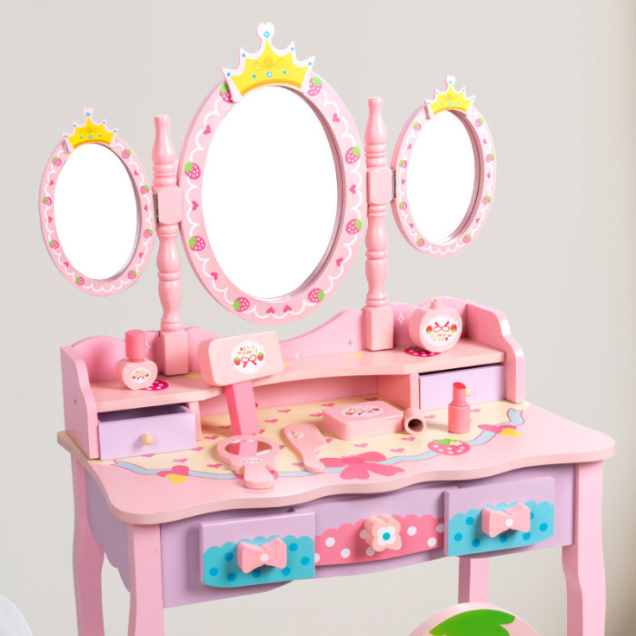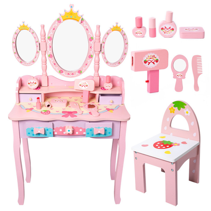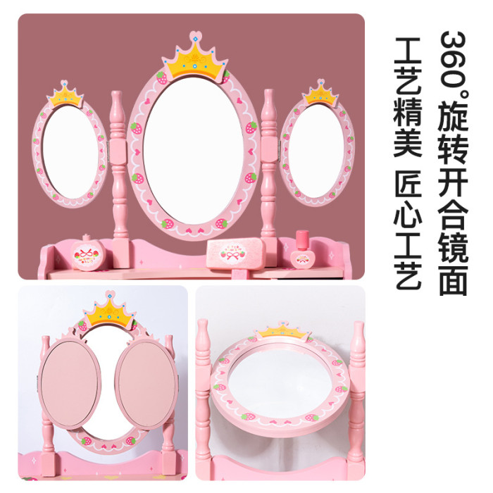 皇冠梳妝台女孩木質仿真化妝桌椅化妝用品套裝扮家家酒玩具生日禮物