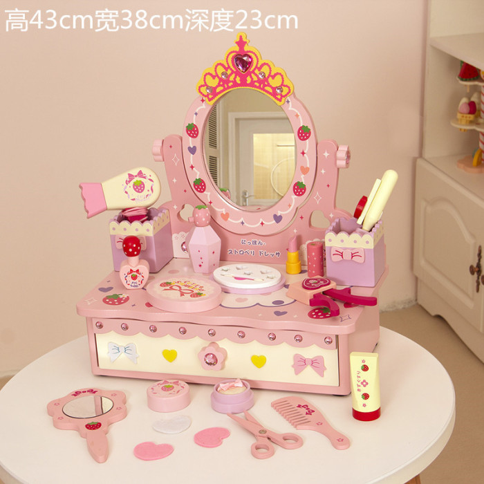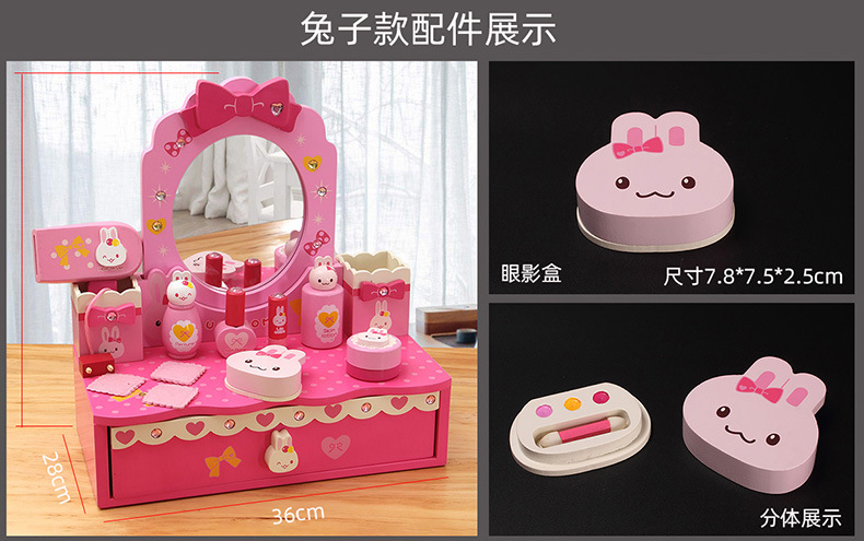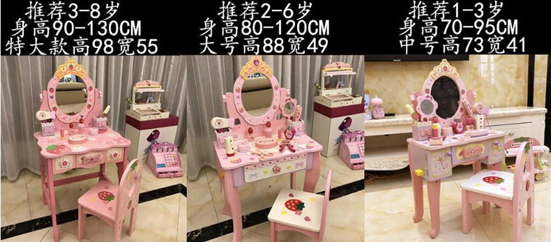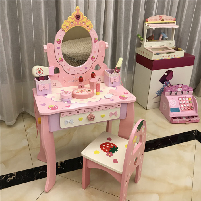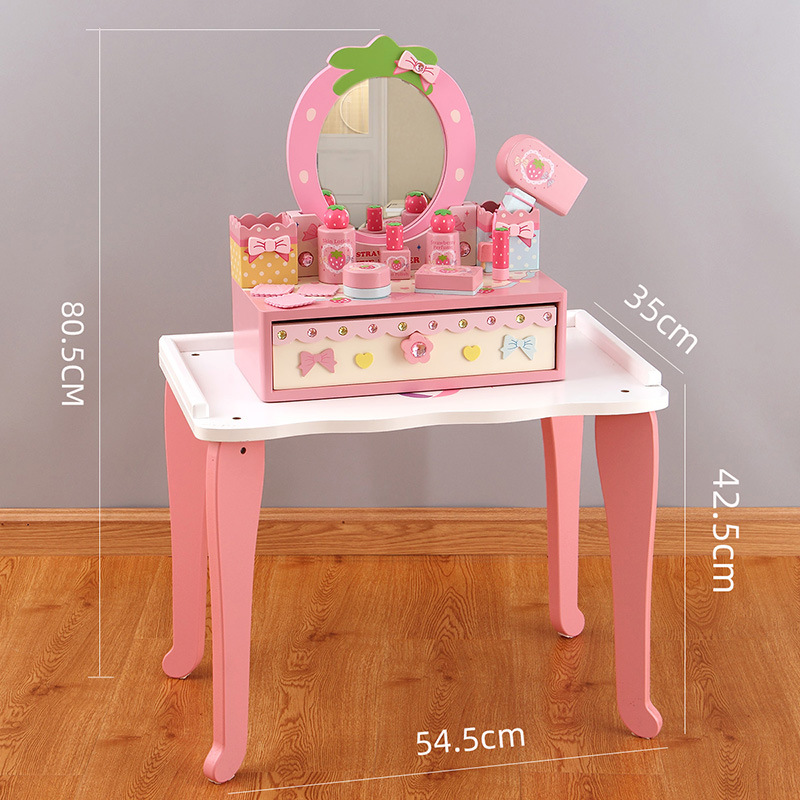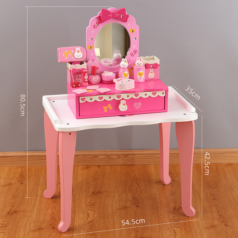 木質兒童扮家家酒梳妝台套裝3-6嵗女孩禮物粉色仿真化妝台玩具
