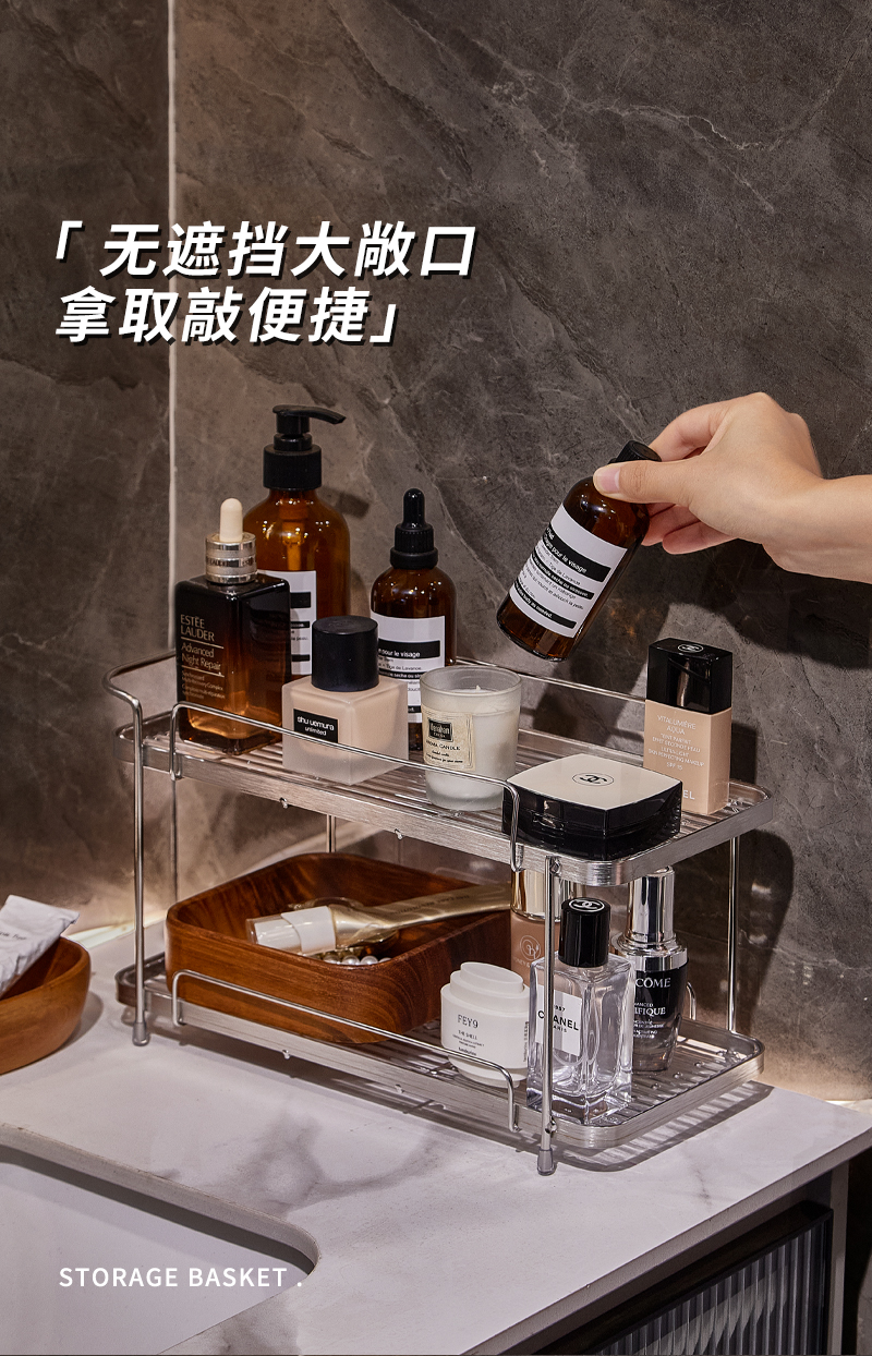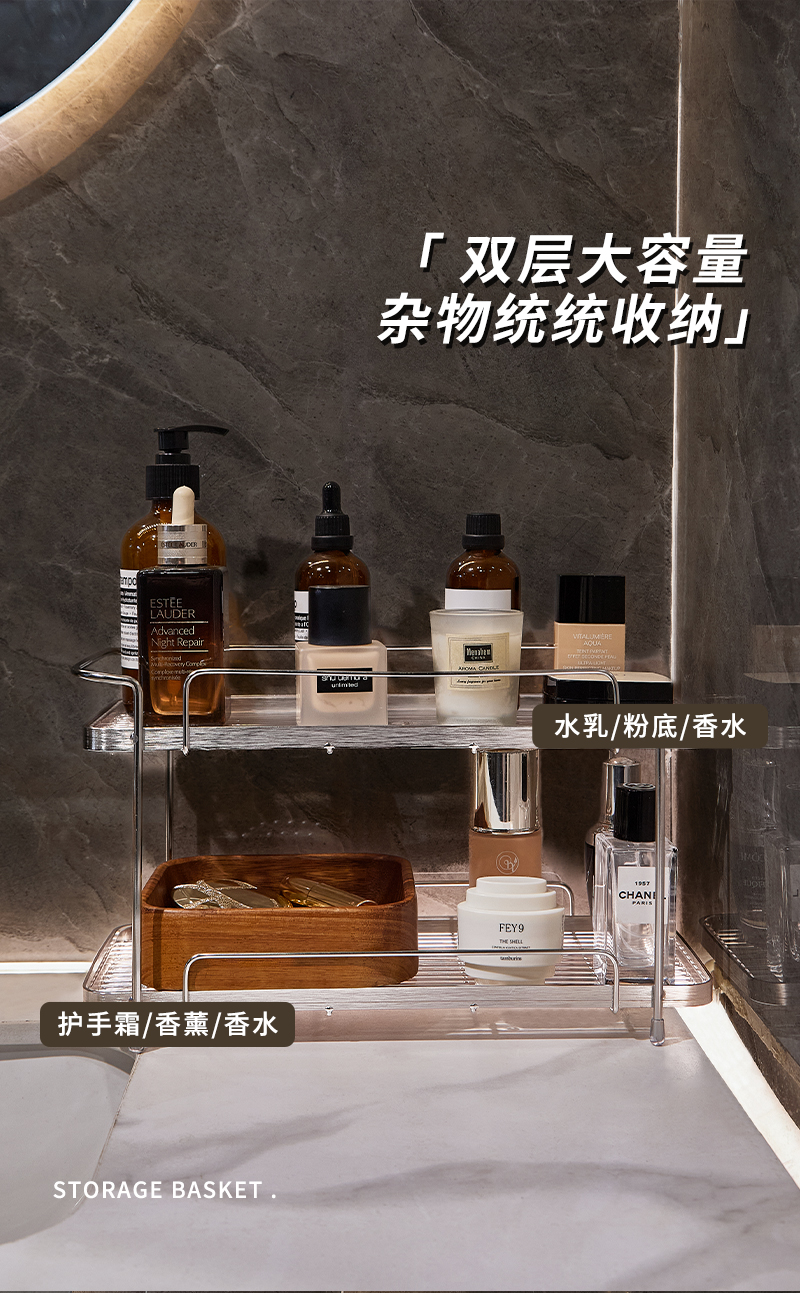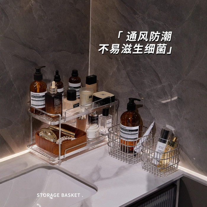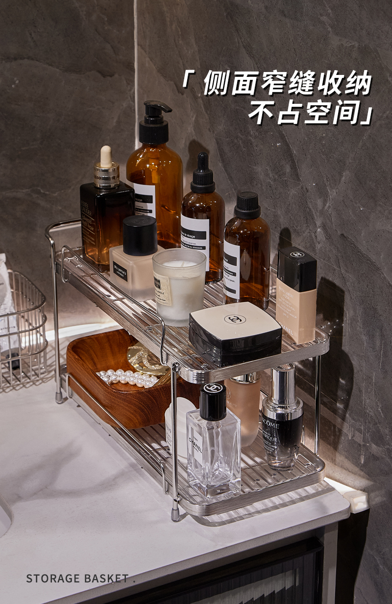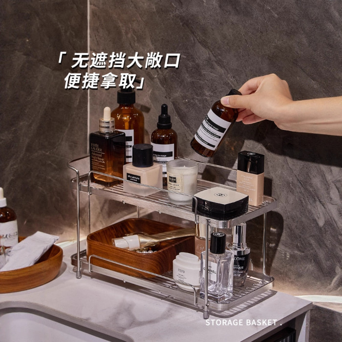 衛生間不鏽鋼化妝品置物架浴室洗手洗漱台護膚香水雜物雙層收納架