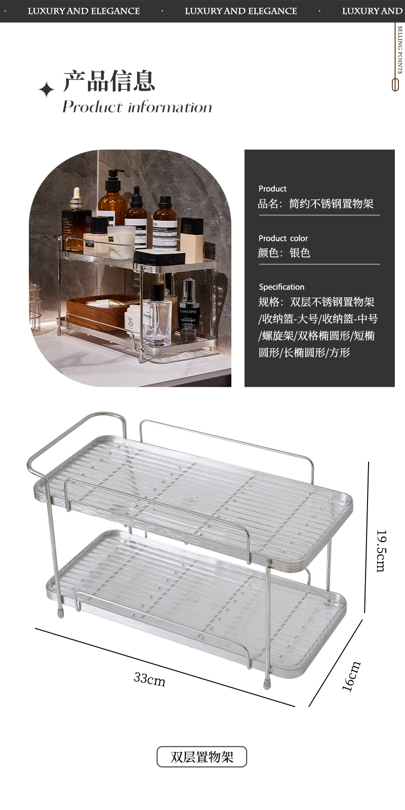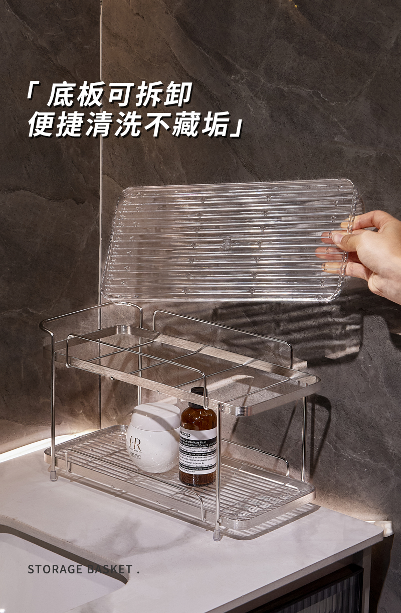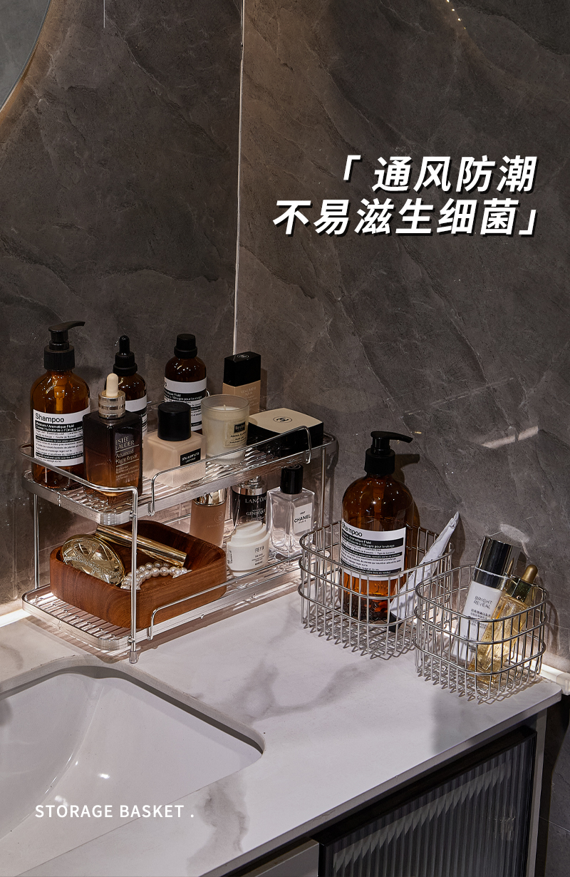 衛生間不鏽鋼化妝品置物架浴室洗手洗漱台護膚香水雜物雙層收納架