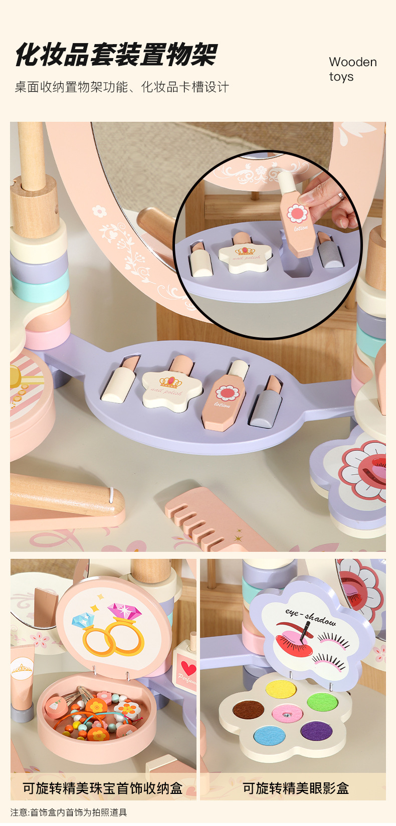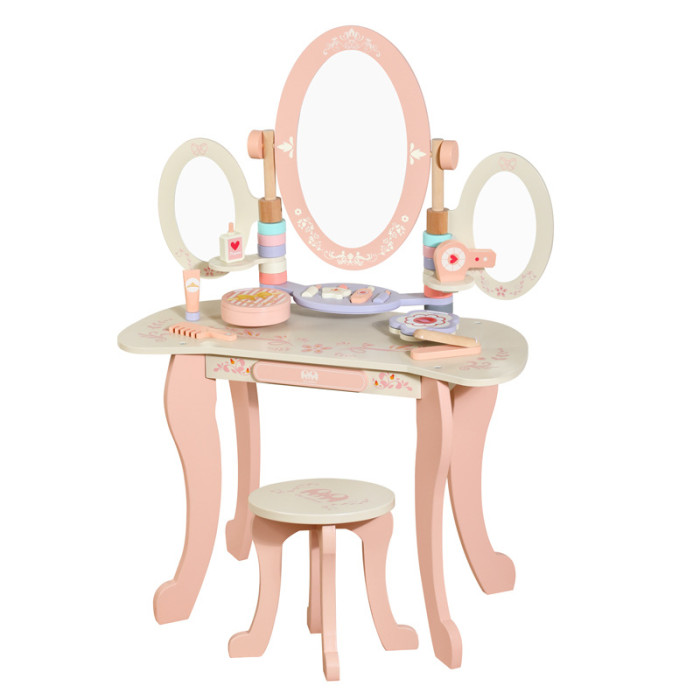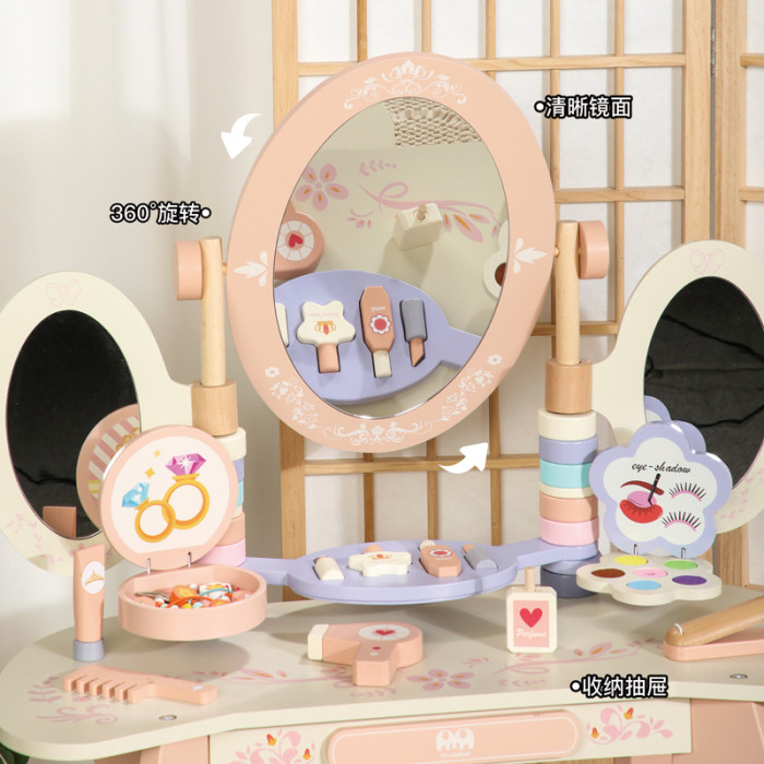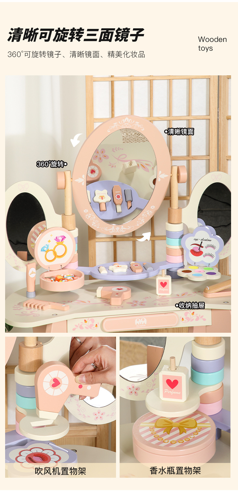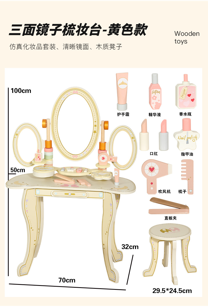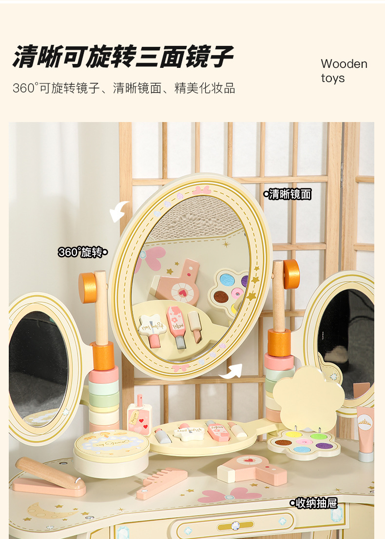 木質梳妝台套裝女孩扮家家酒三面鏡子玩具兒童仿真北歐風公主化妝台