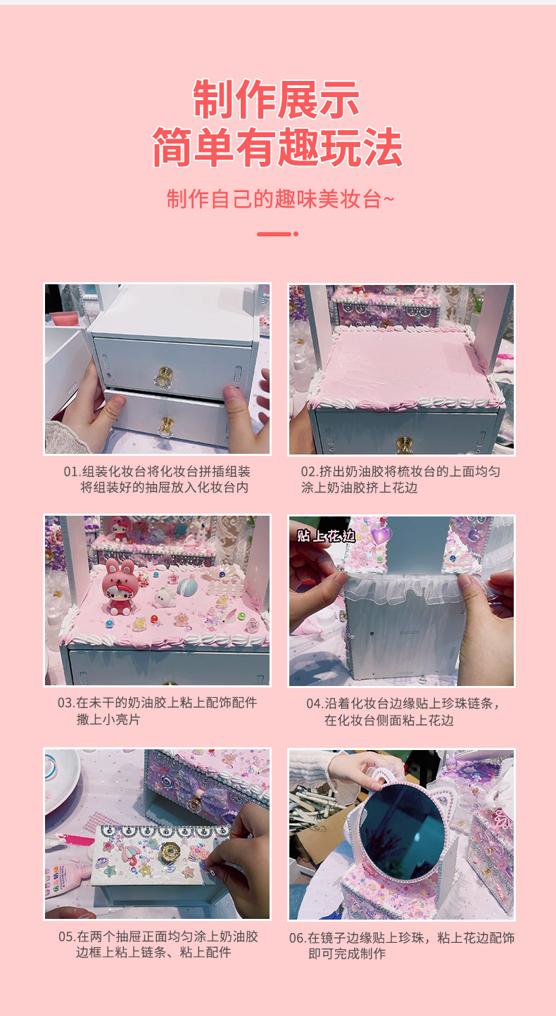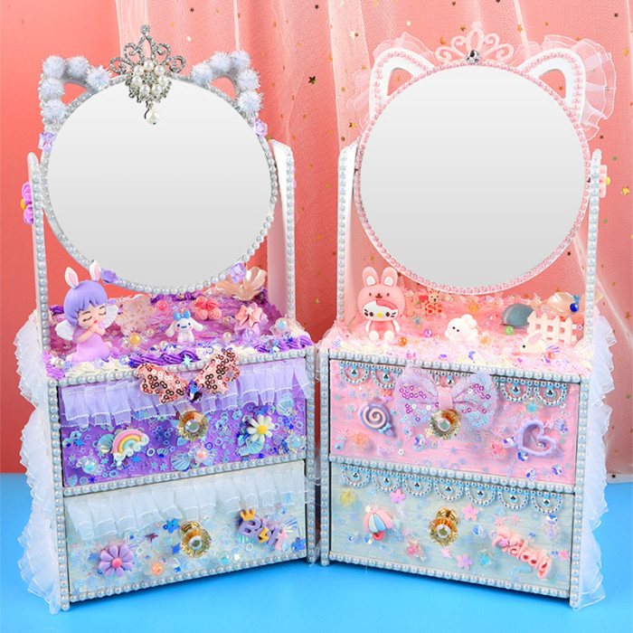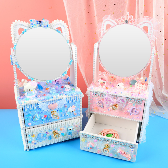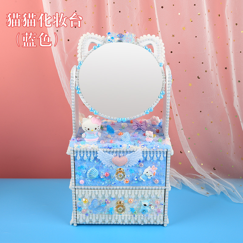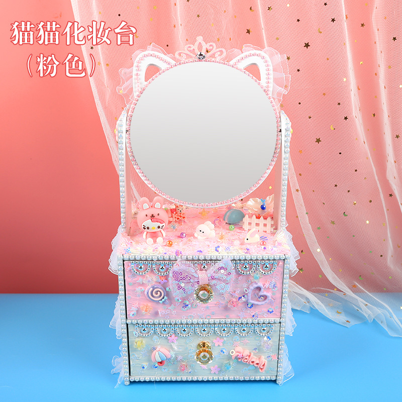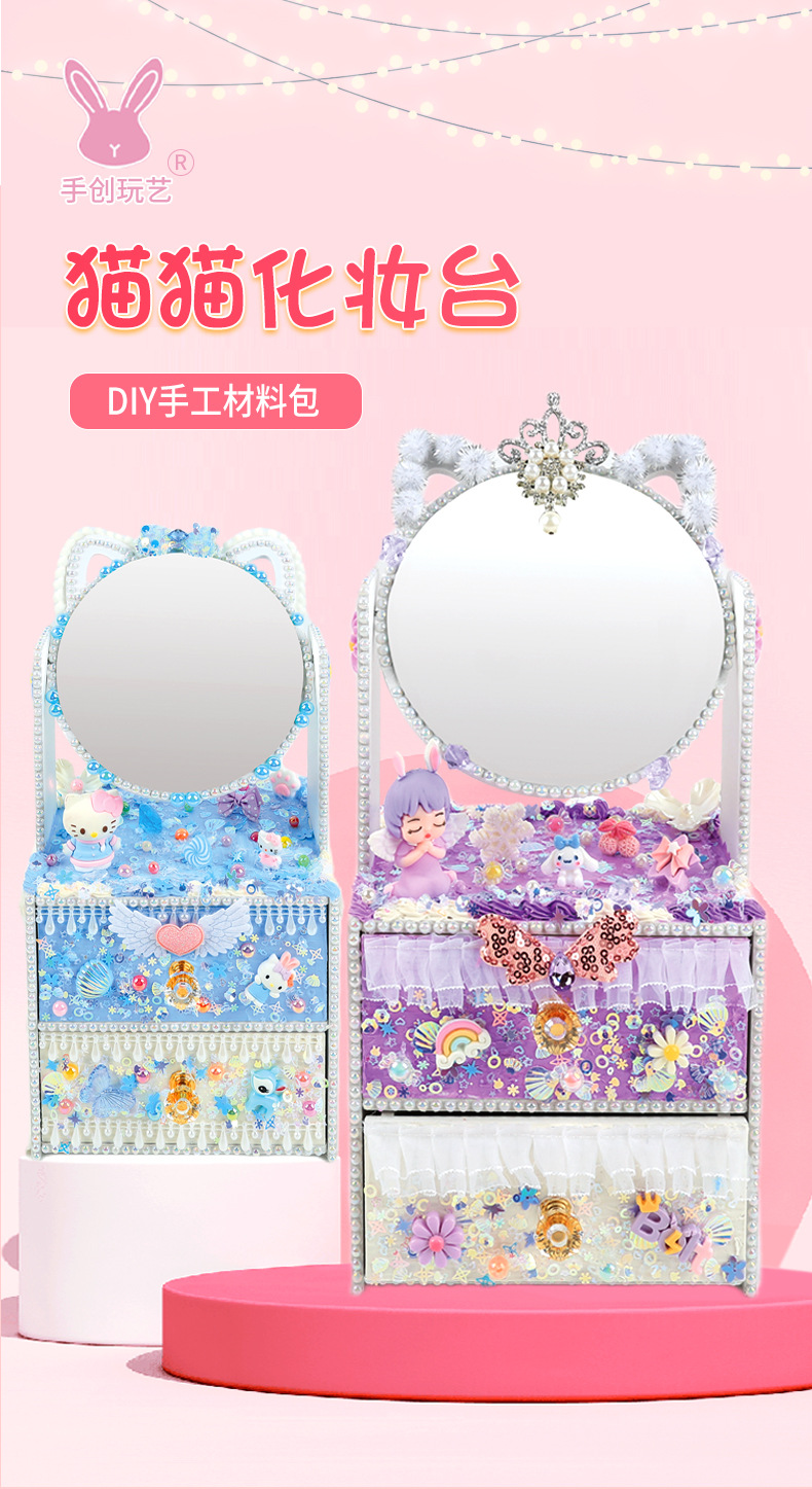 手創玩藝 貓貓化妝台兒童手工DIY製作化妝鏡女孩抽屜收納櫃材料包