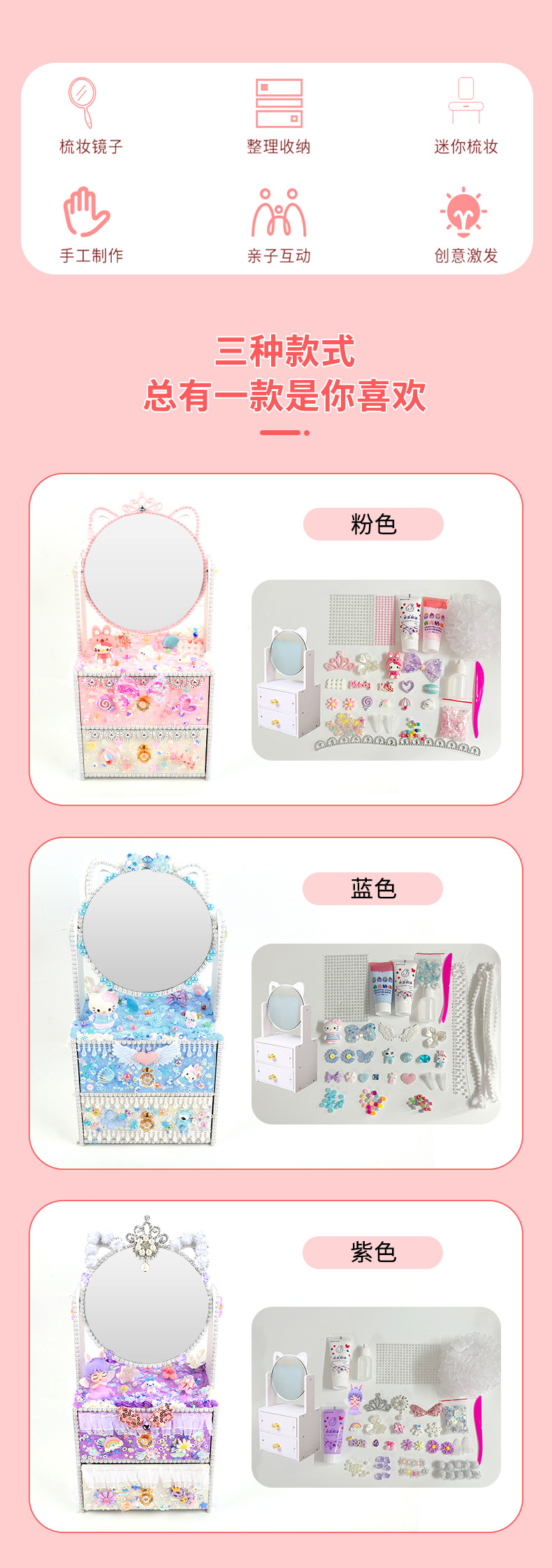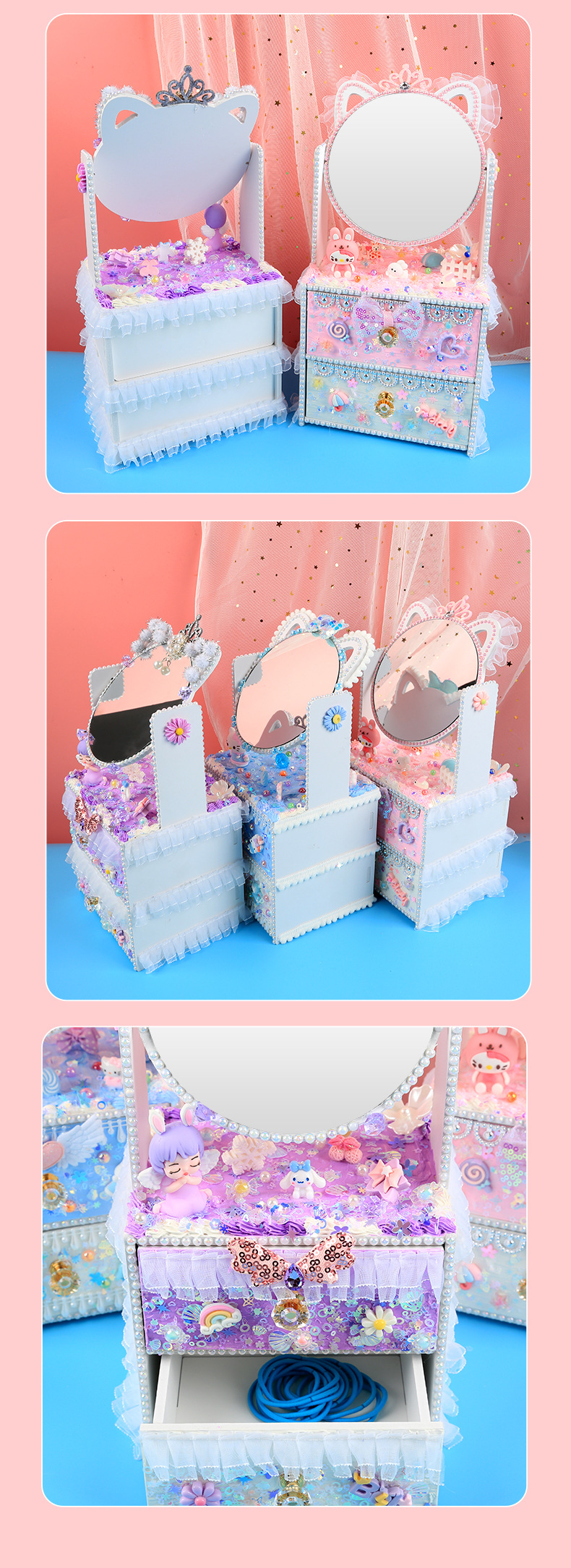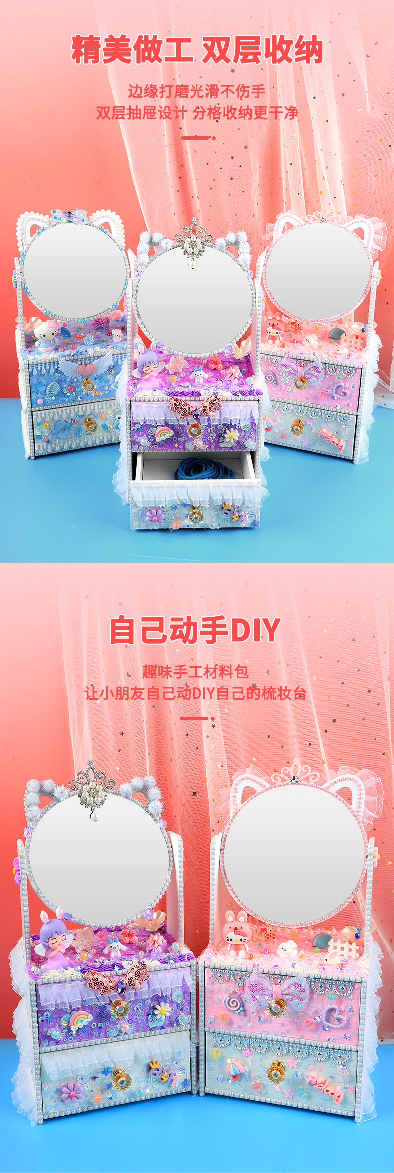 手創玩藝 貓貓化妝台兒童手工DIY製作化妝鏡女孩抽屜收納櫃材料包