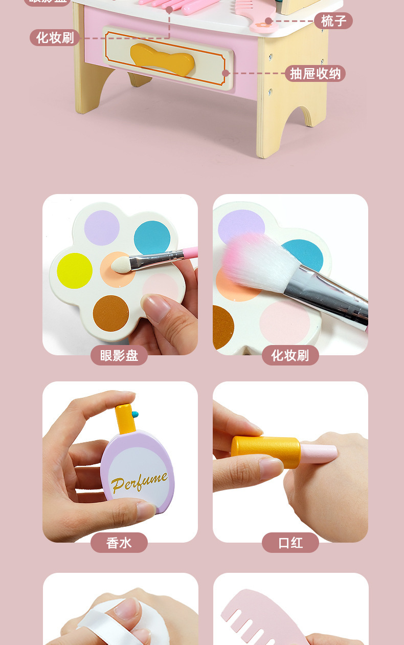 Y8Z木製兒童梳妝台化妝玩具仿真扮家家酒女孩小公主套裝化妝品