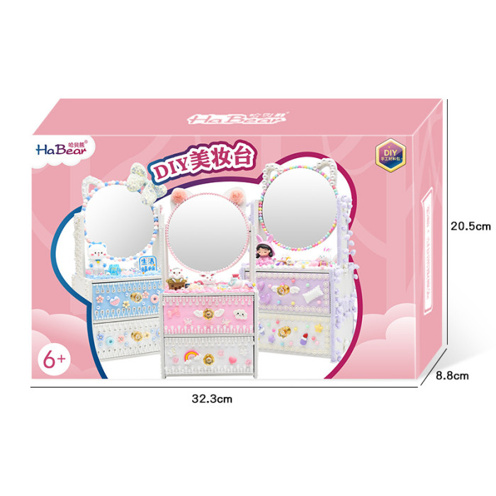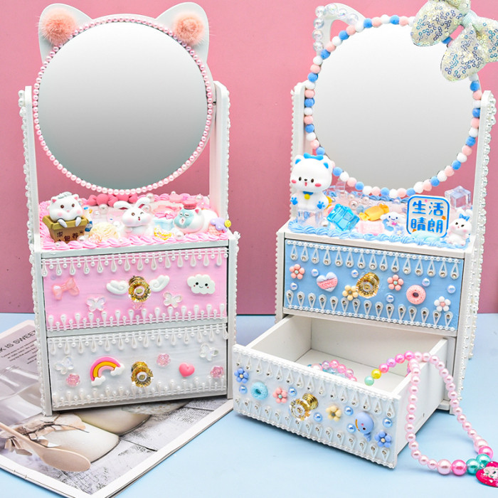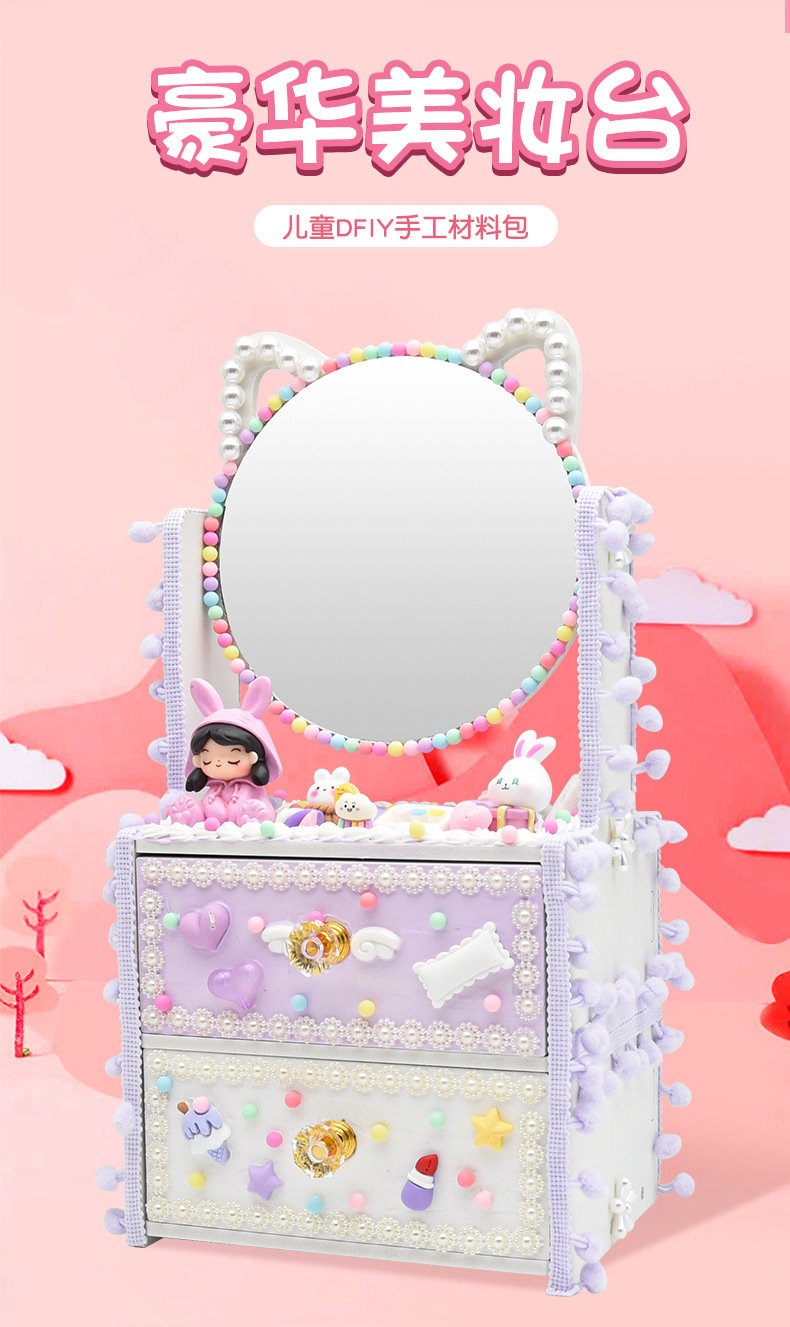 豪華美妝台 兒童diy手工雙層套裝化妝鏡儲物盒抽屜首飾櫃玩具益智
