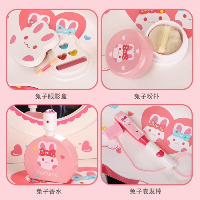 新款小白兔梳妝台女孩化妝台寶寶仿真化妝用品扮家家酒木製益智玩具