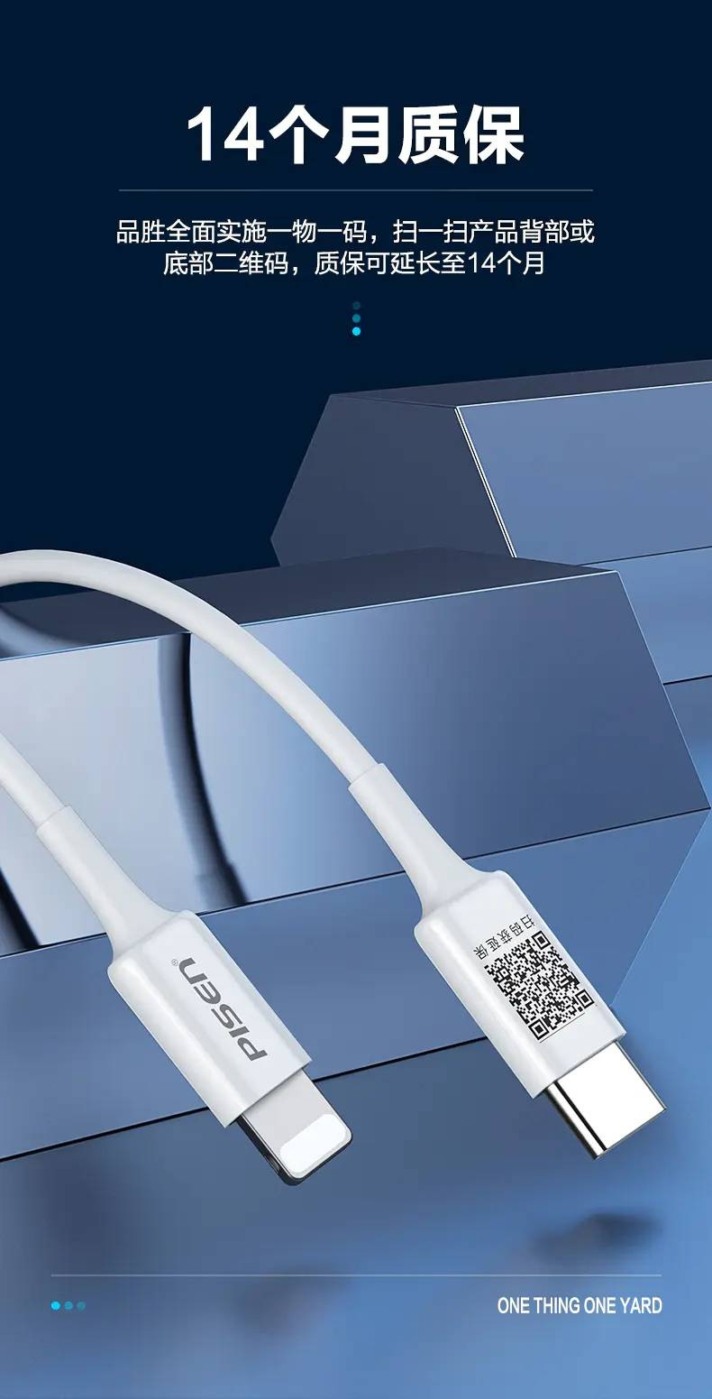 | PISENQUICK | PISENQUICKType-CtoLightning3A數據線1.8m/2.2m(雲初白)紙質彩盒 |