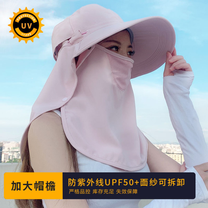 夏季遮陽防曬帽大簷防紫外線遮臉太陽帽子女士護臉可拆卸騎車盆帽