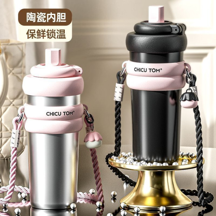 奇古堂吸琯保溫杯大容量女士高顔值車用外出可攜式水杯 2026新款