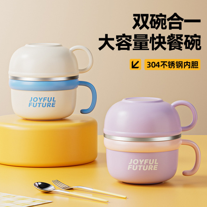 304不鏽鋼飯碗食堂打飯上班族不鏽鋼帶蓋保溫飯盒學生快餐泡麵杯