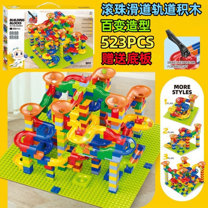 兒童滾珠滑道軌道積木拼裝滾珠大小顆粒拼插玩具益智力男女孩禮物