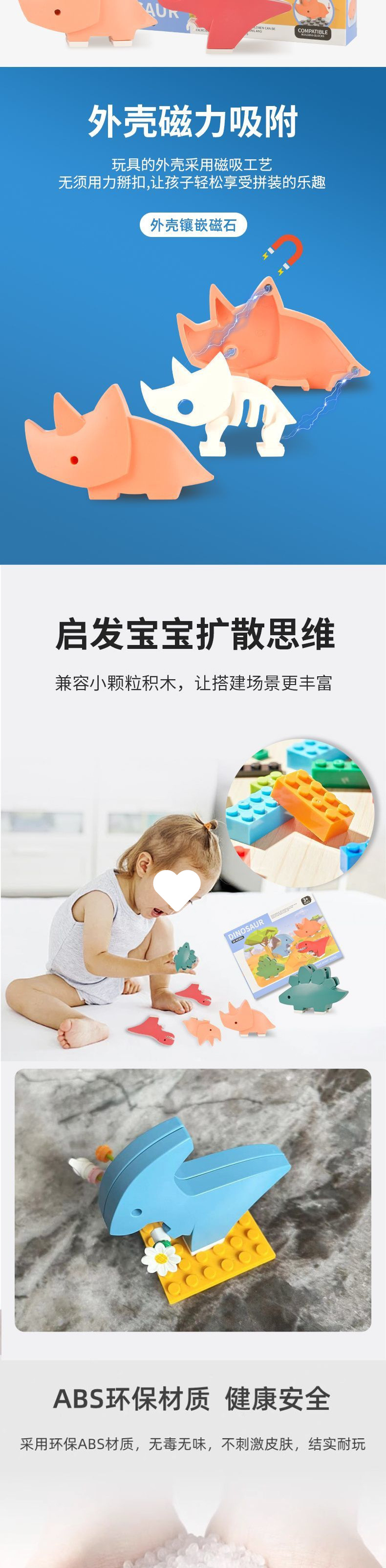 新款兒童磁力磁吸小恐龍玩具拼裝男孩立體動物模型霸王龍益智禮物