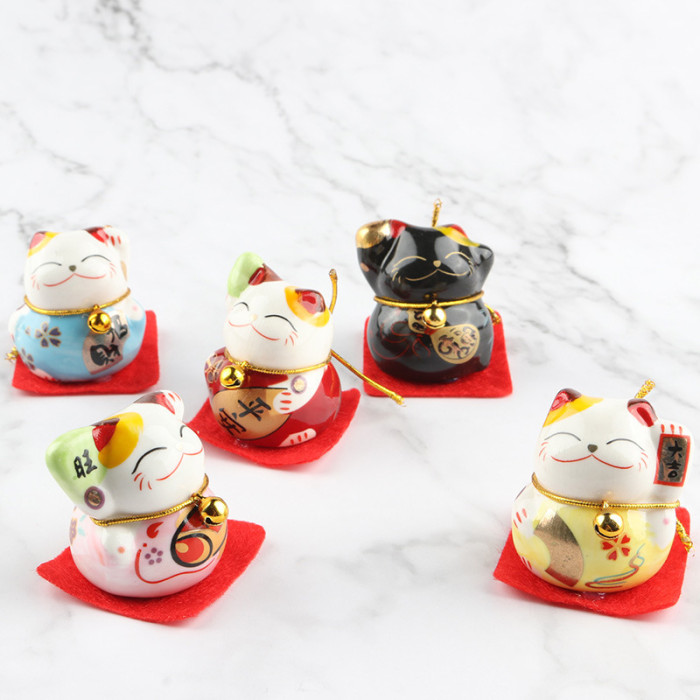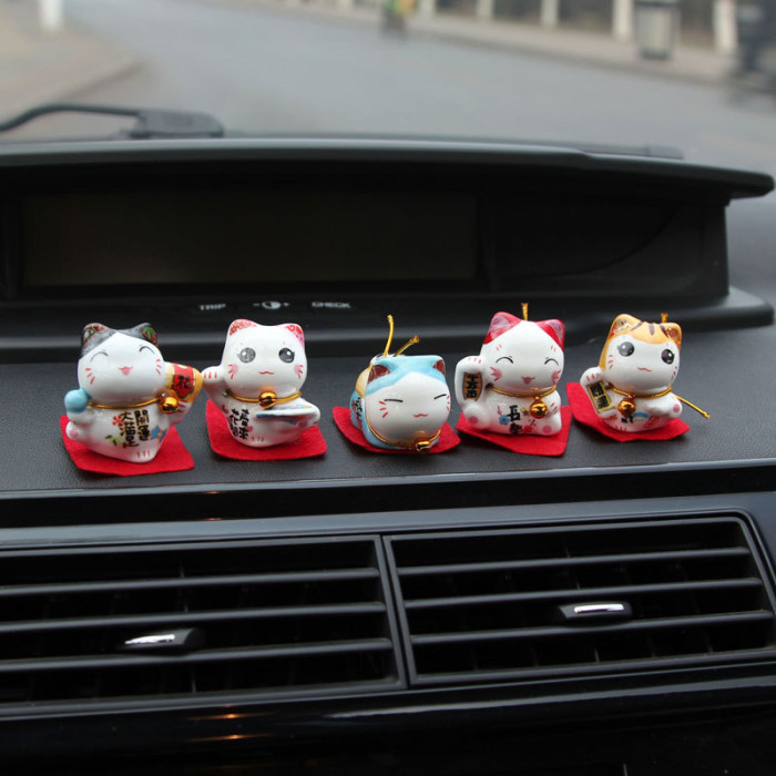 招財貓套件 可愛迷你小號陶瓷招財貓汽車平安擺件 家居桌面裝飾品