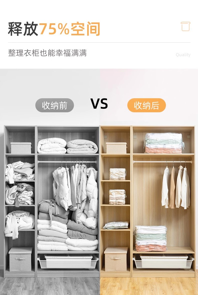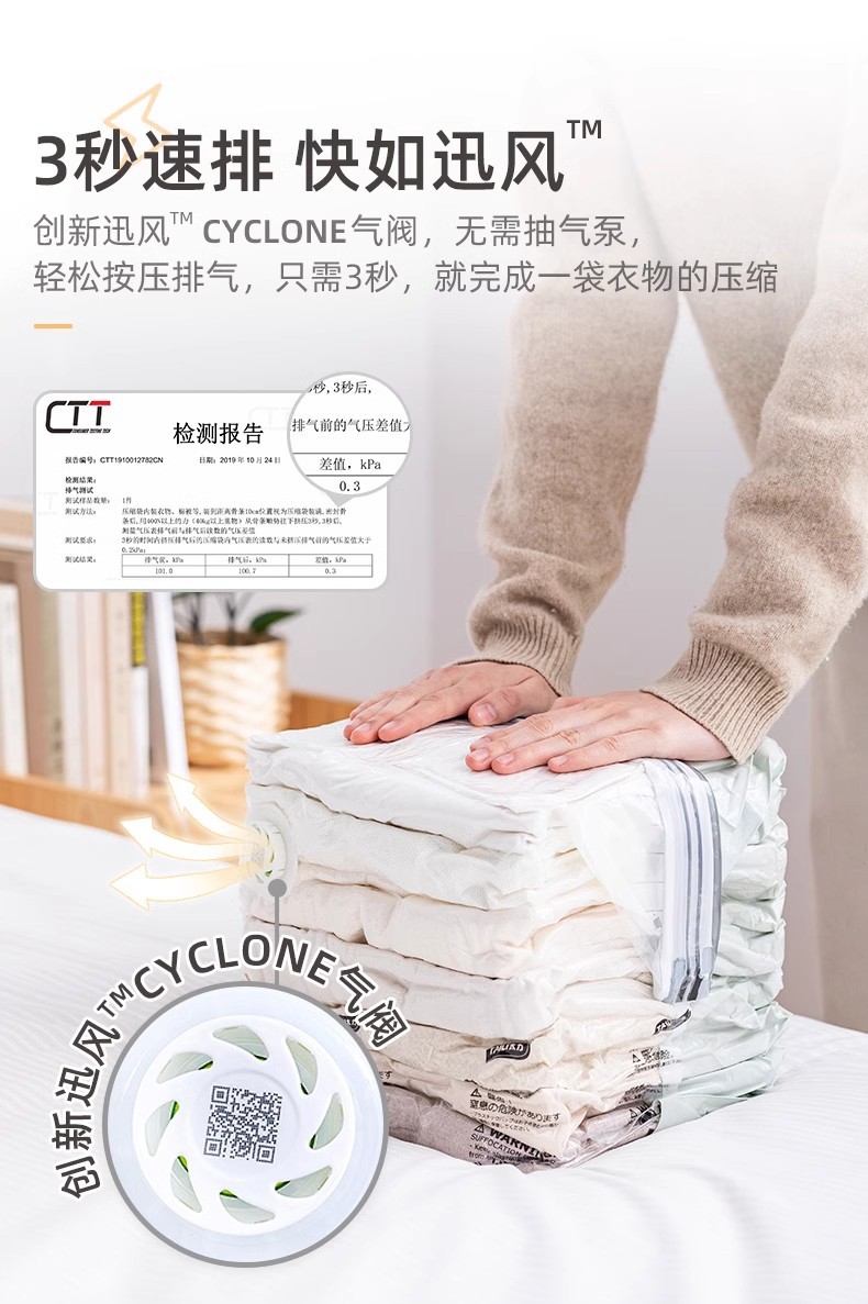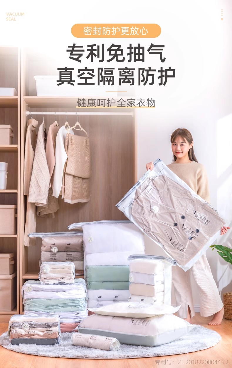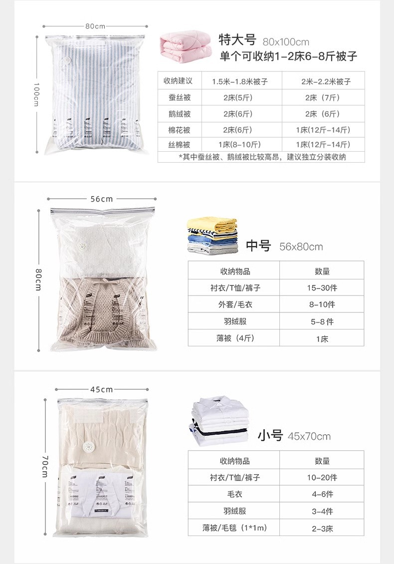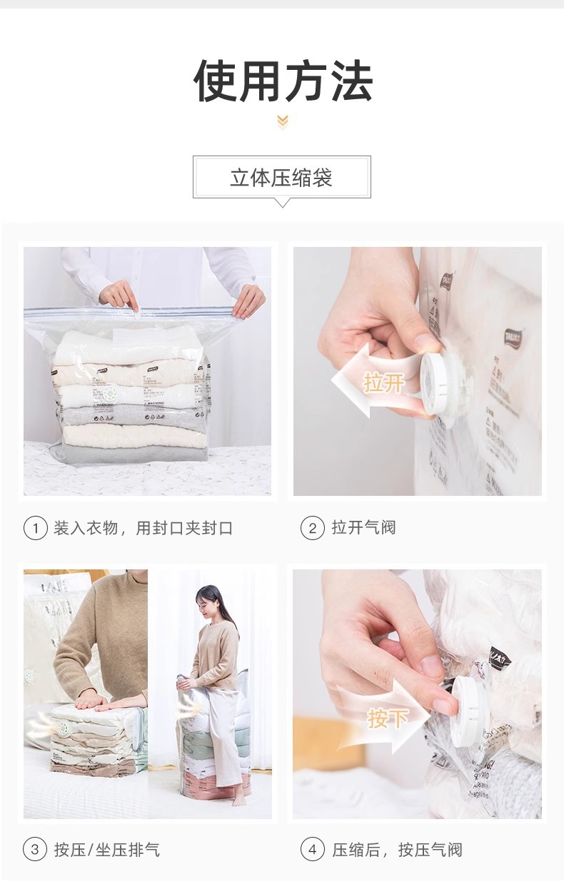 太力免抽氣收納袋真空壓縮袋衣服被子棉被羽絨服衣物收納神器旅行