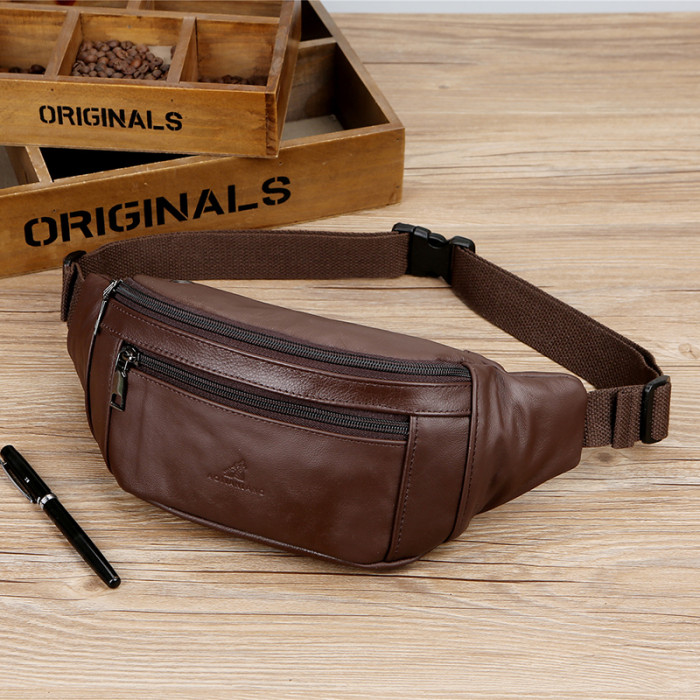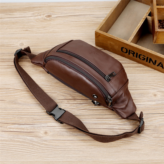 真皮多功能腰包男斜背休閒旅行包頭層牛皮耐磨大容量手機包胸包女