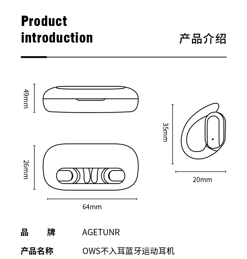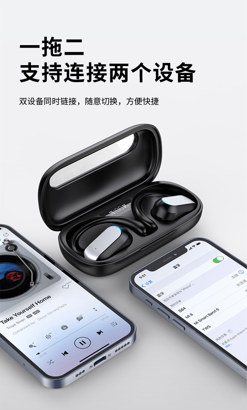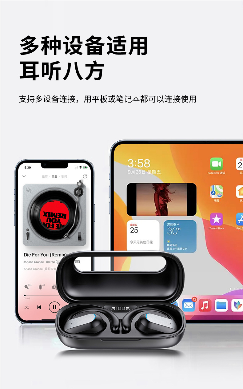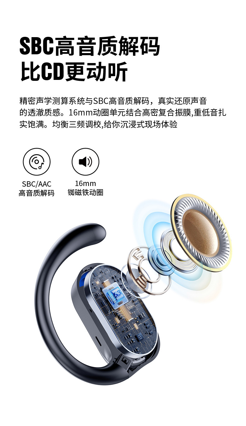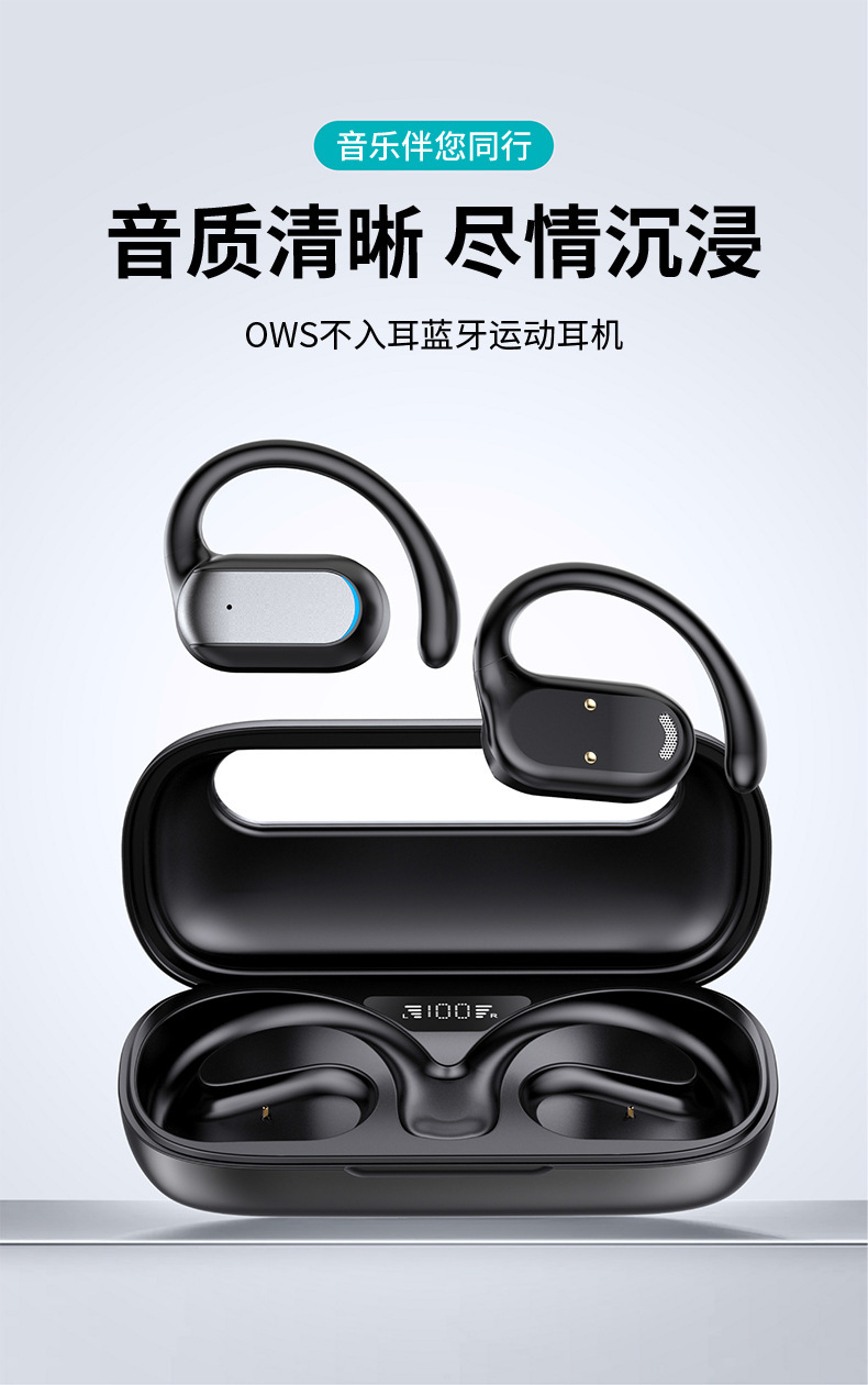 運動藍牙耳機超長續航無線耳機快充OWS高音質降噪耳機開蓋即連