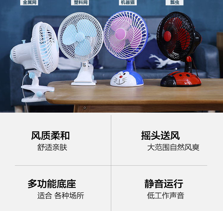 小型搖頭電風扇卡通學生宿捨床上桌上型夾子小風扇靜音家用桌面夾扇
