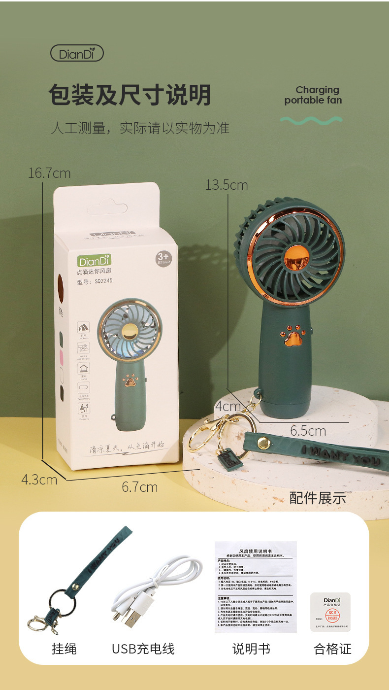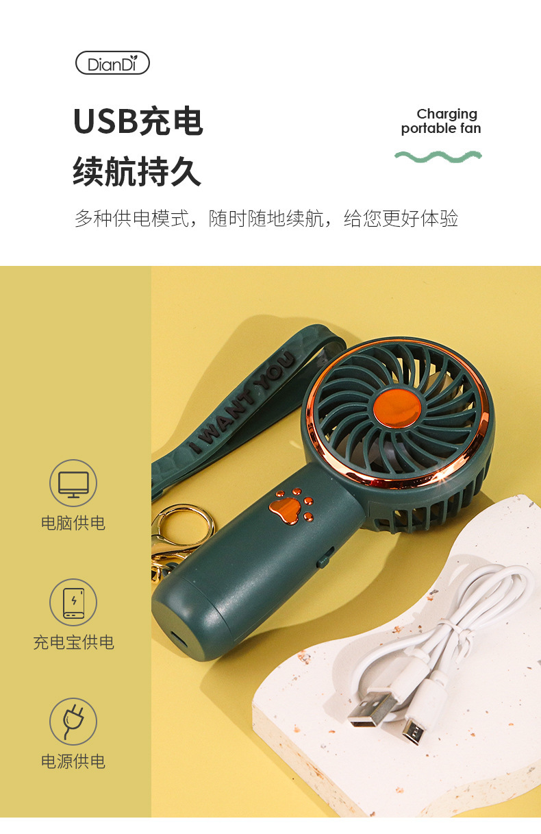 夏季迷你USB充電小風扇可愛卡通可攜式手持風扇戶外學生辦公通用