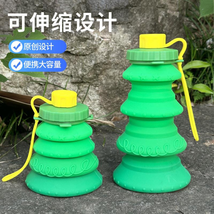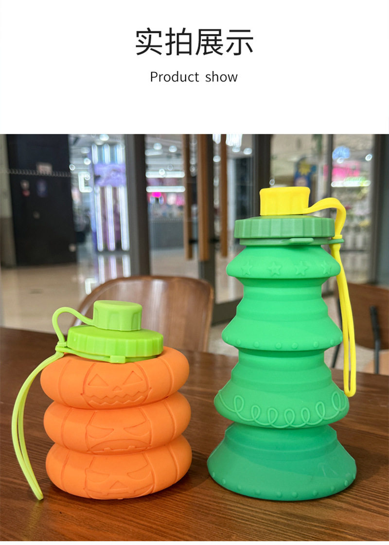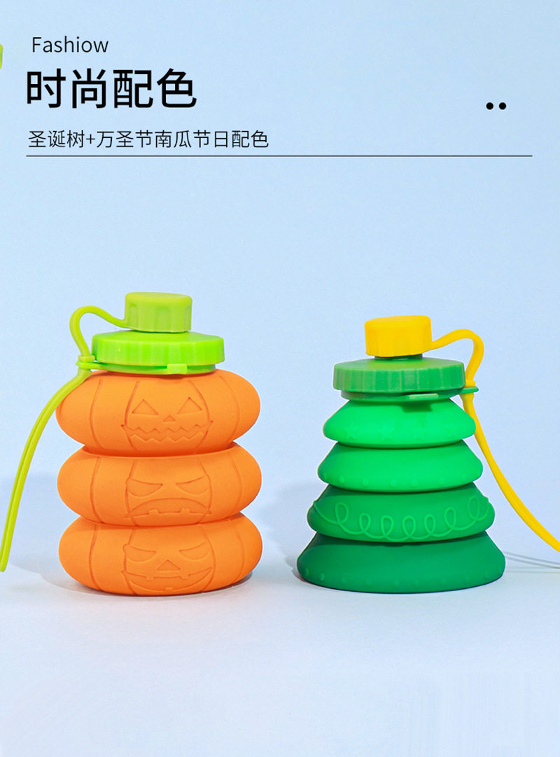 創意新款食品級矽膠折曡水壺便捷戶外運動水杯南瓜聖誕樹造型水壺