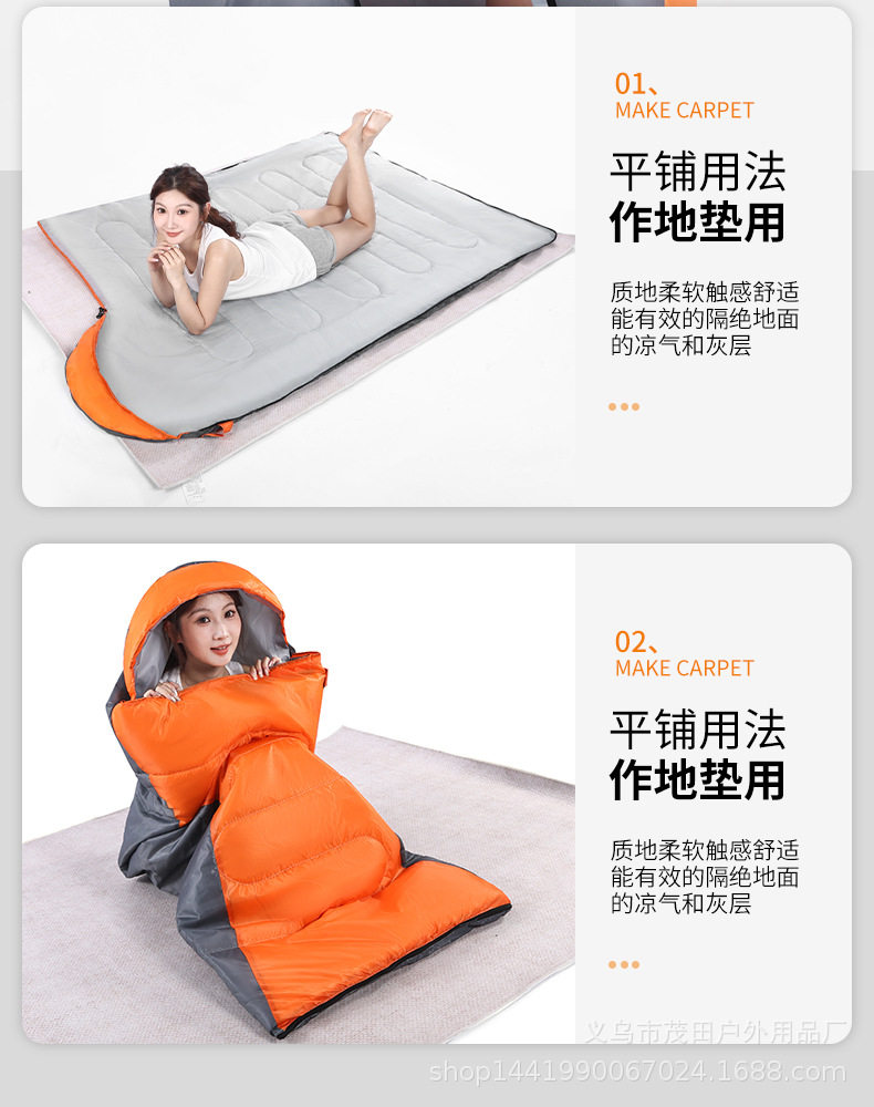 春夏秋三季戶外旅行睡袋成人露營野營睡袋 單人睡袋 信封帶帽睡袋