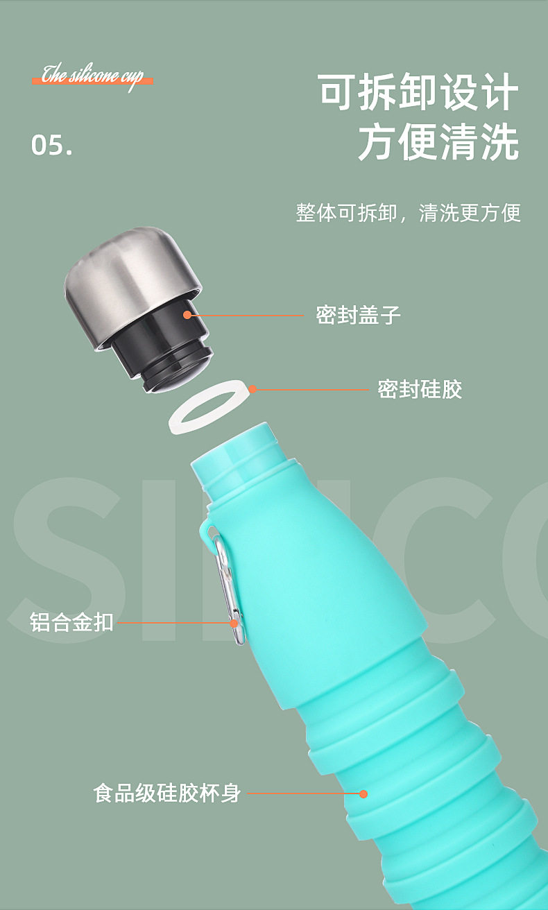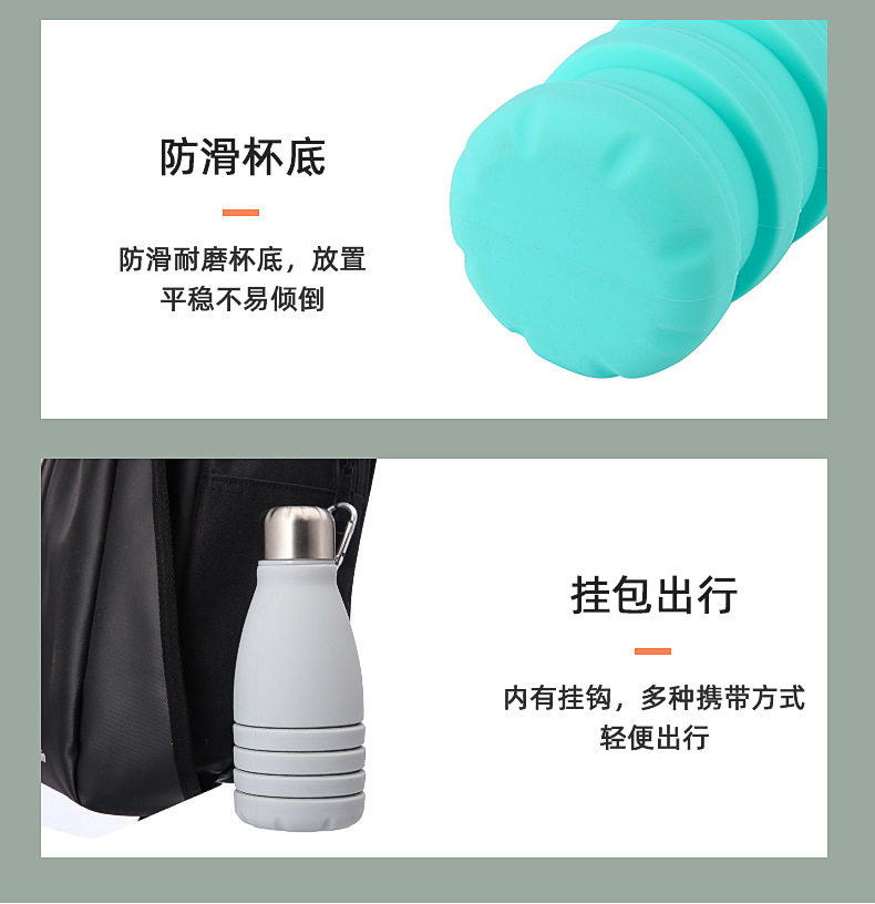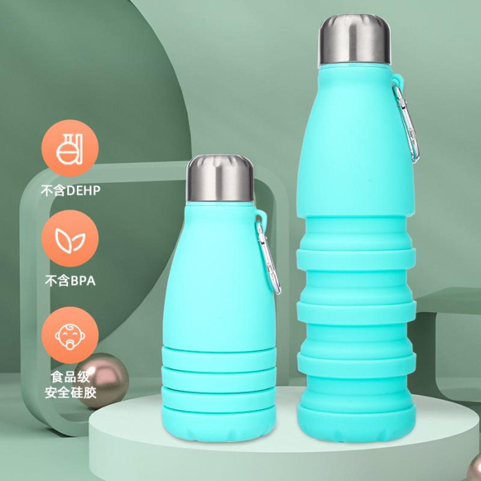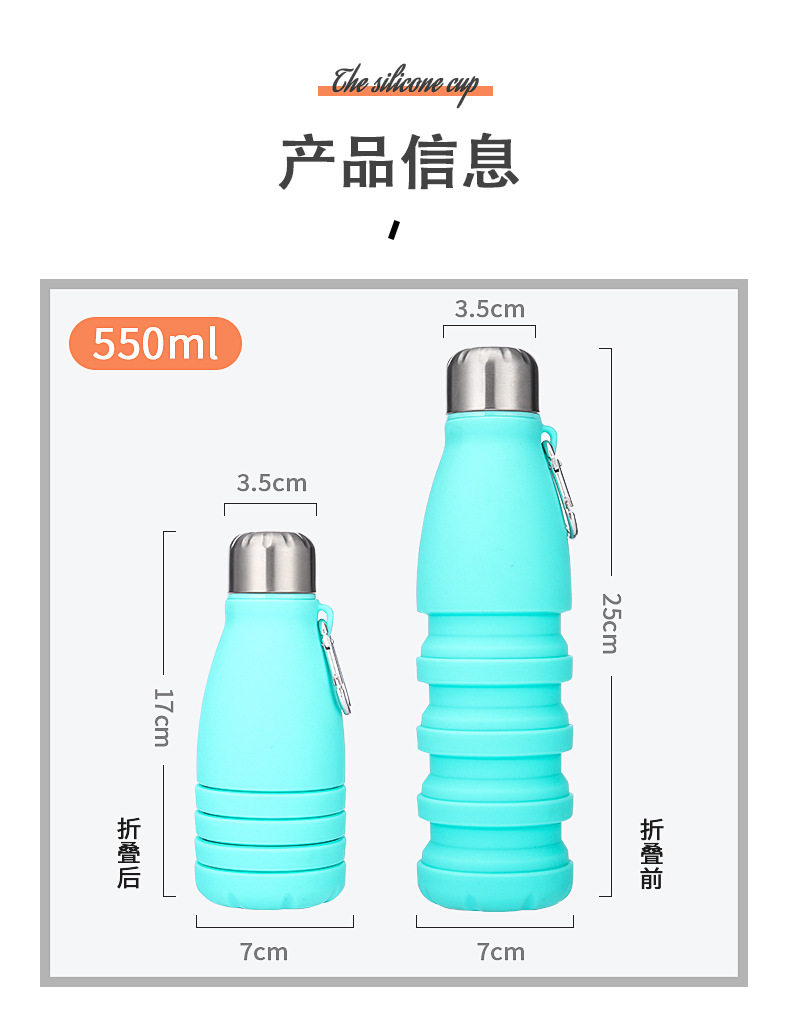 新款鉑金級矽膠伸縮可樂瓶戶外運動折曡水壺550ml水杯子