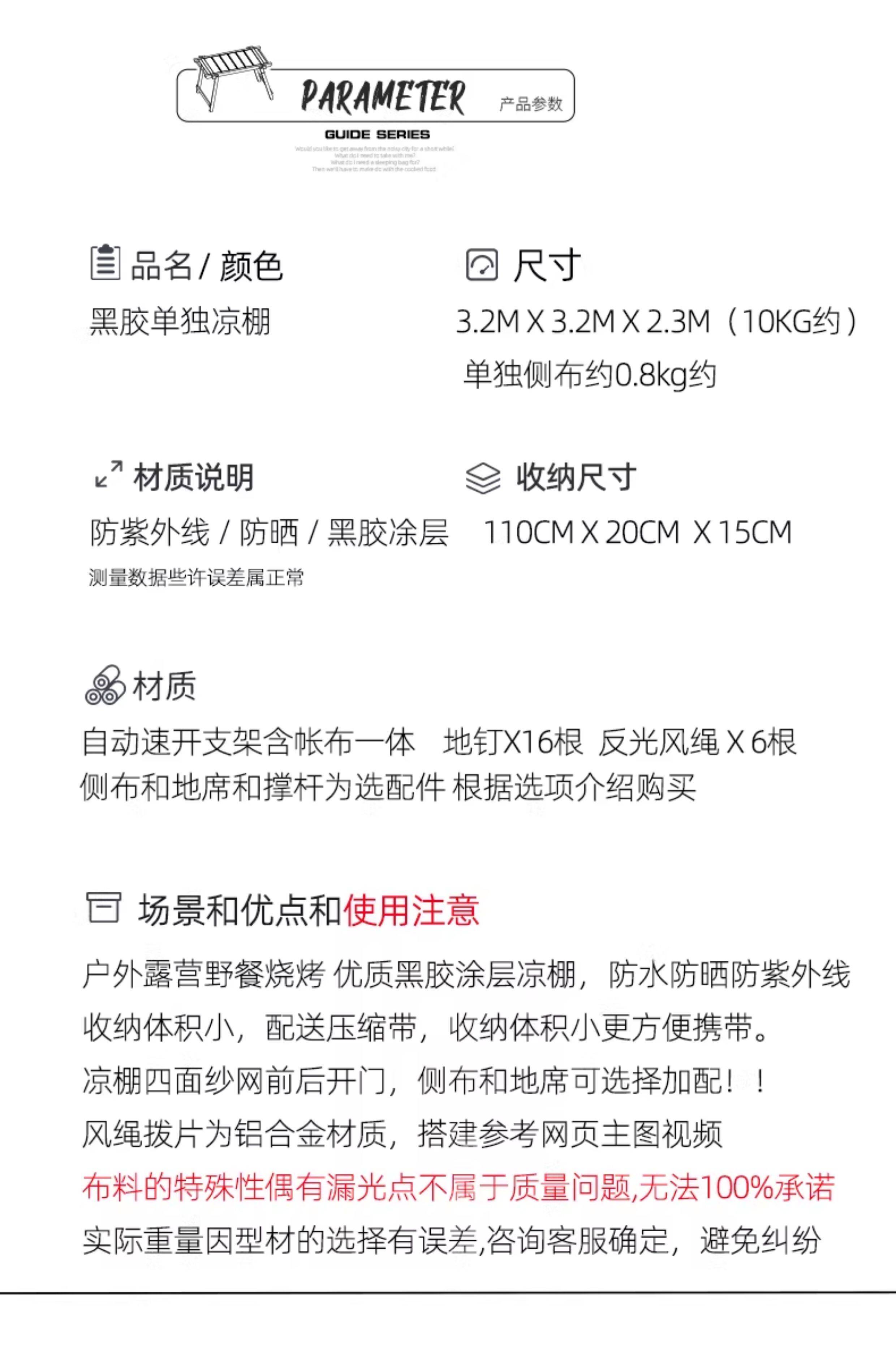 步林GuideSeries戶外防蚊蟲帳篷半自動速開涼棚天幕防風防紫外線
