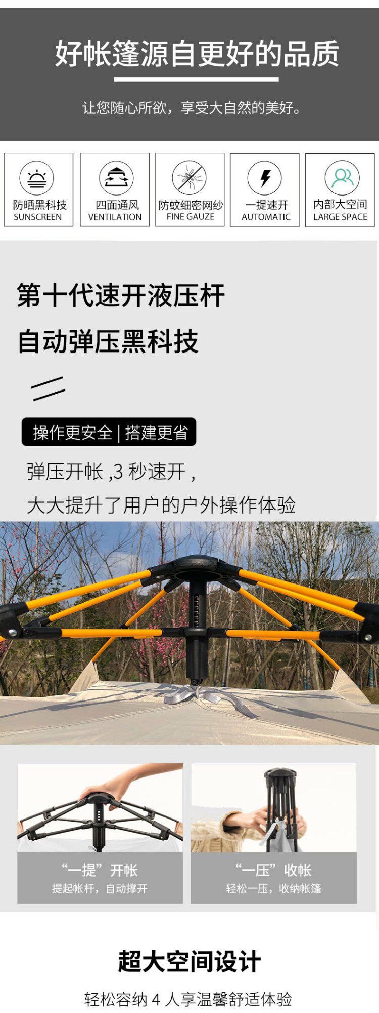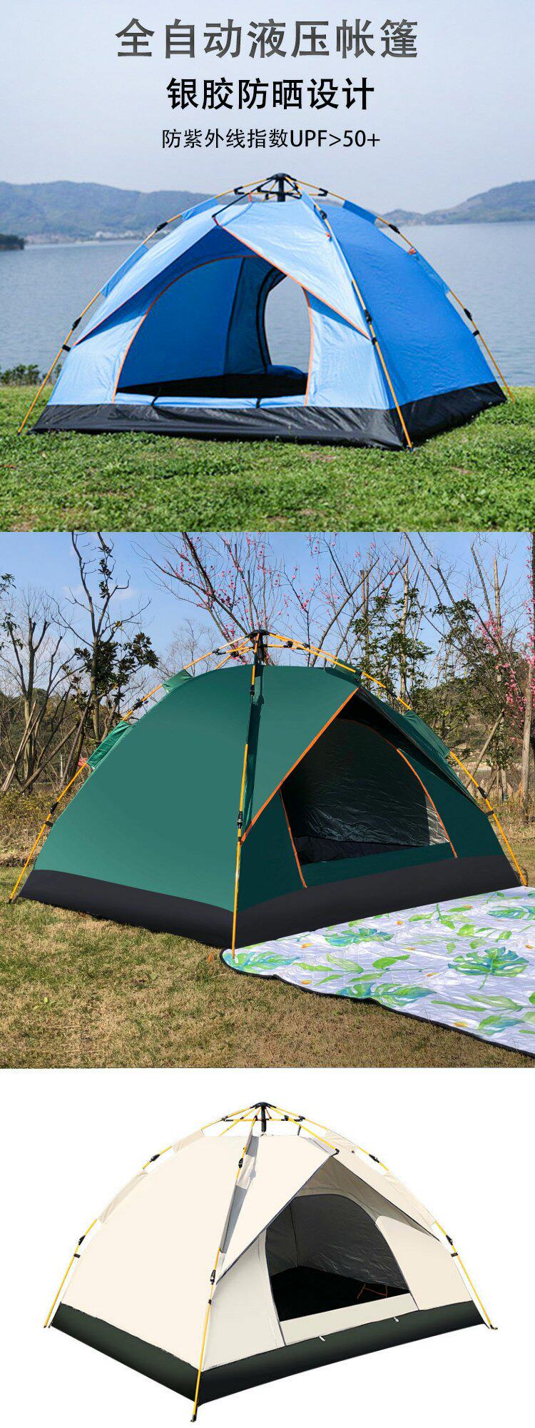 德國帳篷可攜式折曡全自動3-4人牛津布野營公園沙灘速開戶外露營