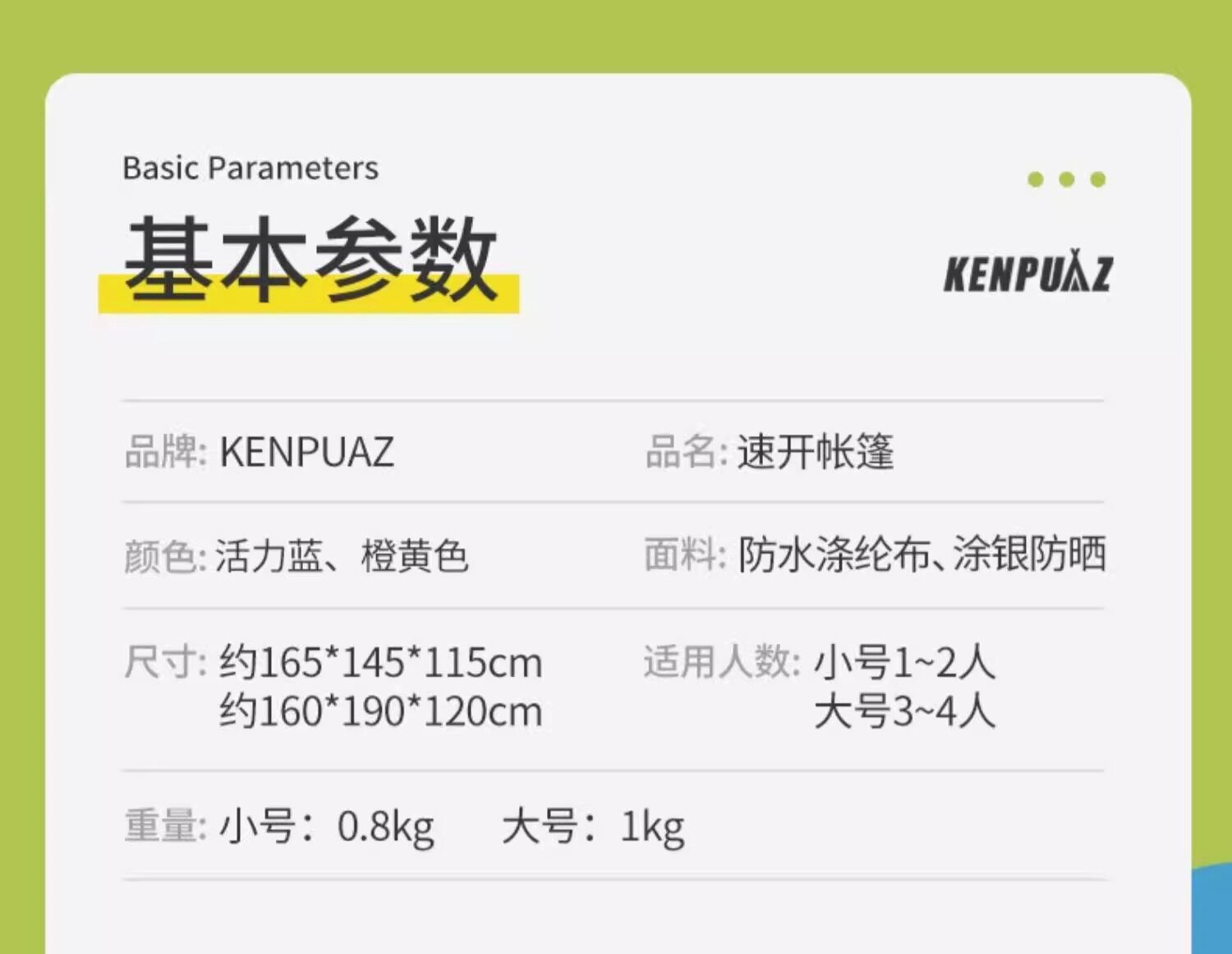 | 帳底材質 | 190T塗銀布 |