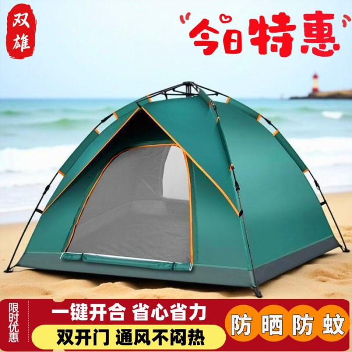 帳篷戶外2-3人全自動速開帳篷戶外野餐露營裝備可攜式快速搭建防曬