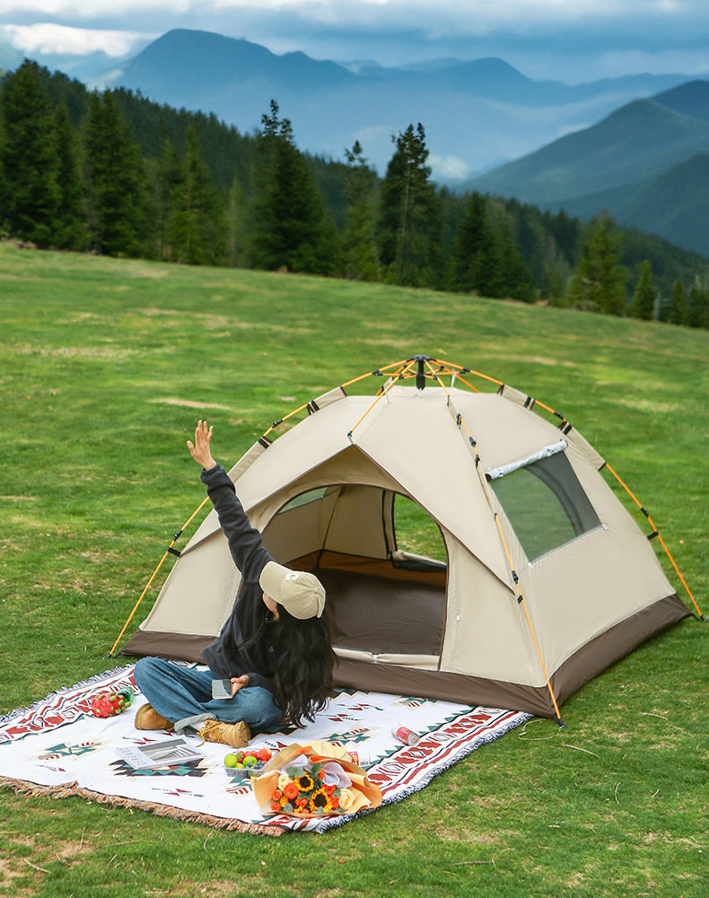 春遊可攜式帳篷單人雙人野營野餐3-4人戶外露營折曡自動簡易速開