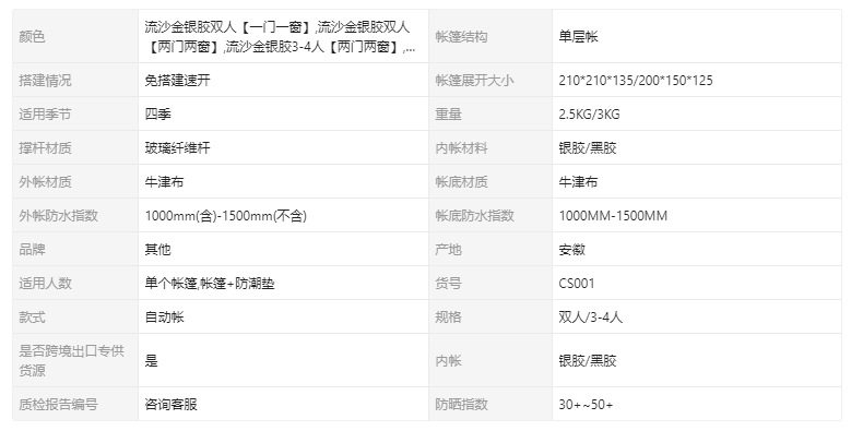 | 帳底材質 | 牛津布 |