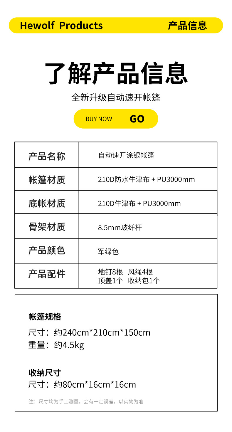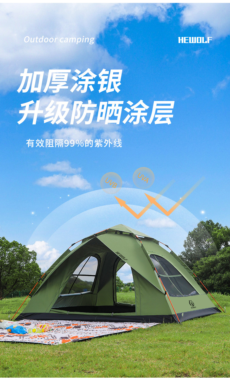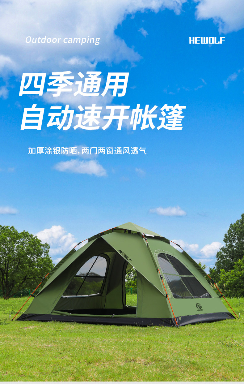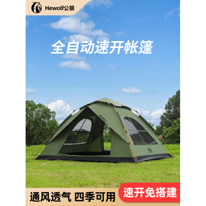 hewolf公狼戶外露營帳篷防曬自動速開折曡可攜式過夜防水全套裝備