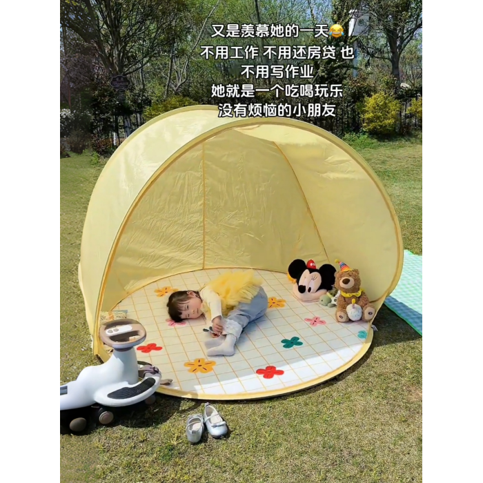 戶外沙灘兒童海邊野餐帳篷自動折曡可攜式速開防曬遮陽帳篷免搭速開