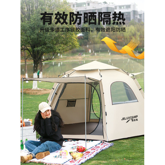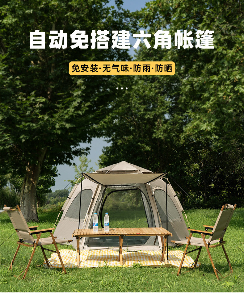 新款戶外免搭建折曡六角帳篷露營速開帳篷野營加厚可攜式防曬防蚊