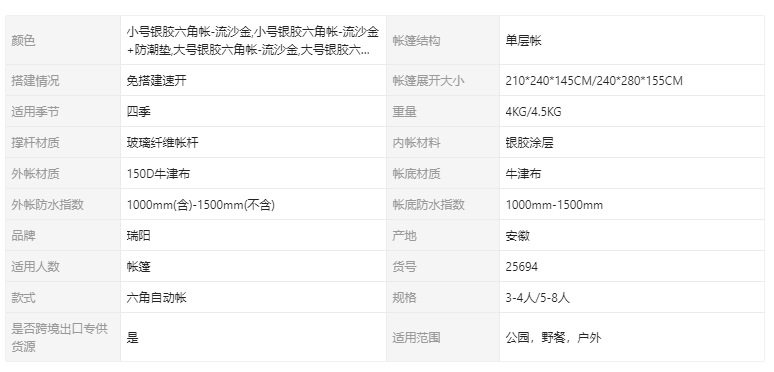 | 篷面尺寸 | 4~6㎡ |