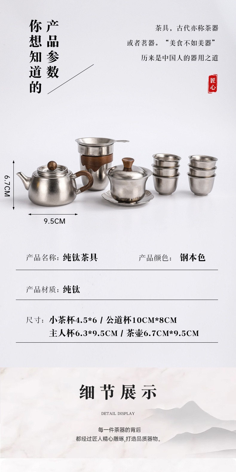 | 茶餐具工藝 | 純鈦 |