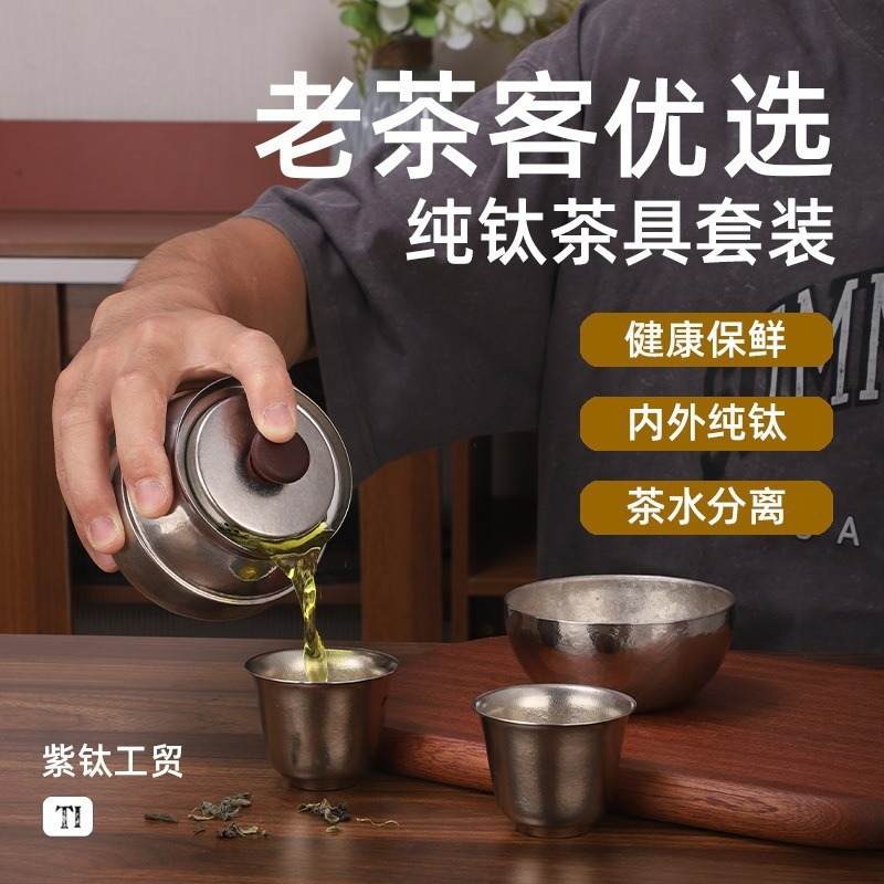 新款純鈦茶杯泡茶專用茶壺主人杯小茶杯喝茶茶盞功夫鈦茶具套裝