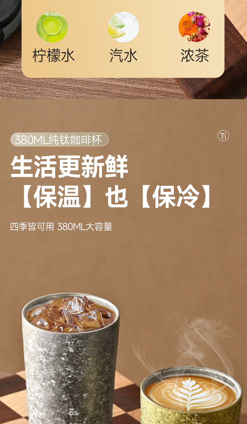 純鈦雙層咖啡杯保溫杯隔熱防燙旅行鈦杯PPSU蓋保溫水杯時尚隨手杯