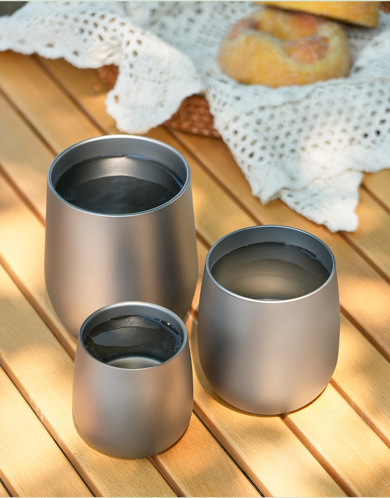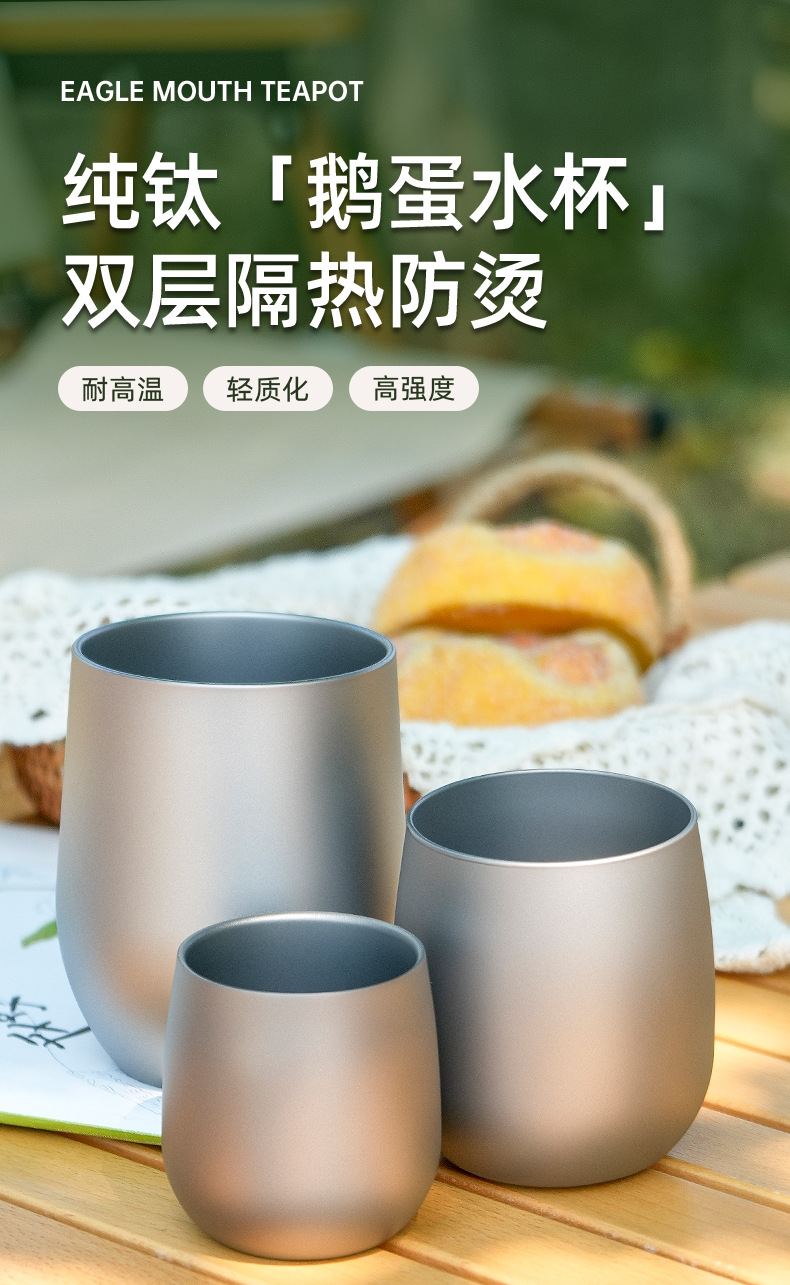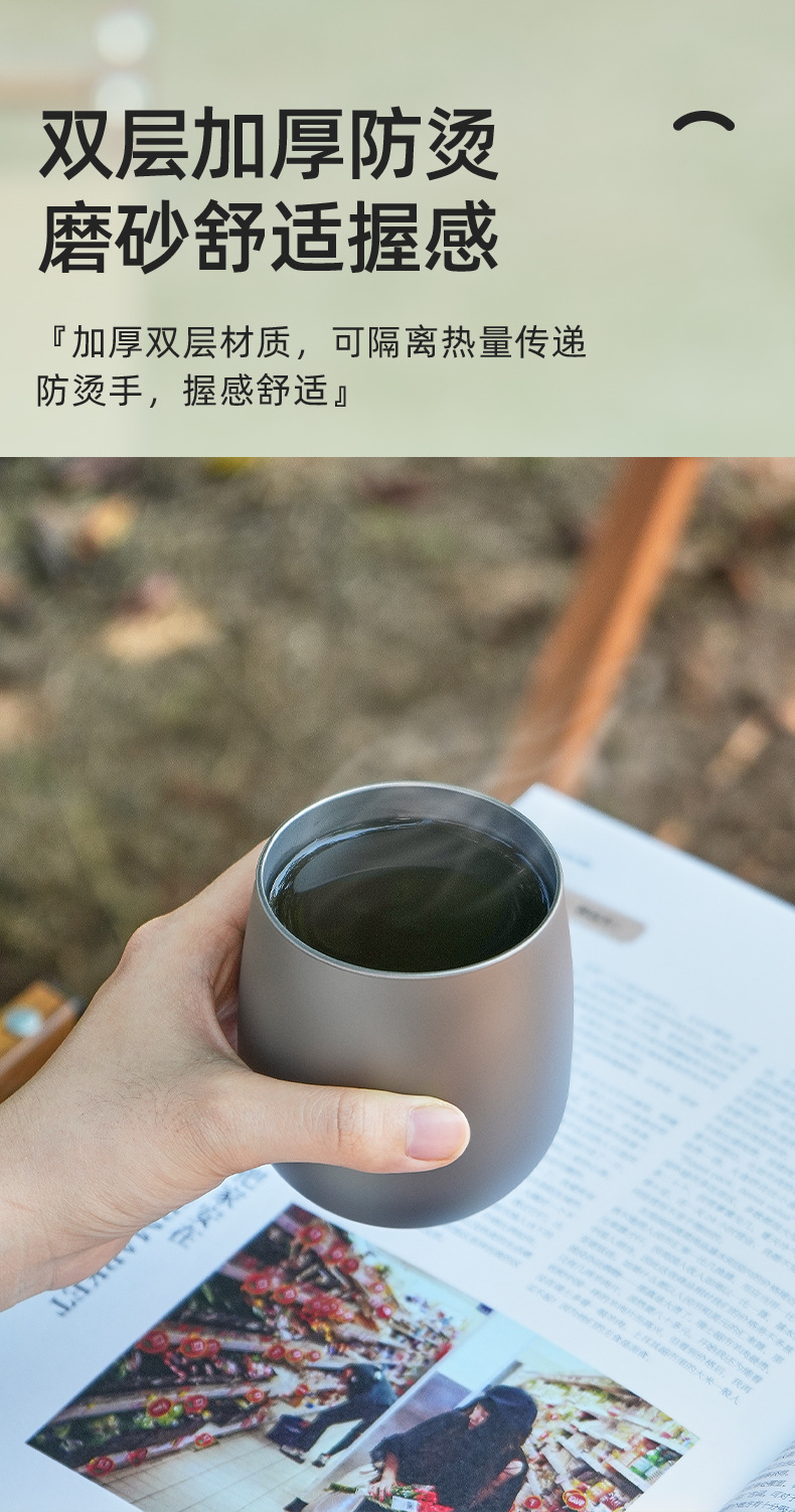 純鈦水杯鵞蛋杯戶外露營雙層防燙咖啡杯鈦合金功夫茶杯主人杯鈦杯