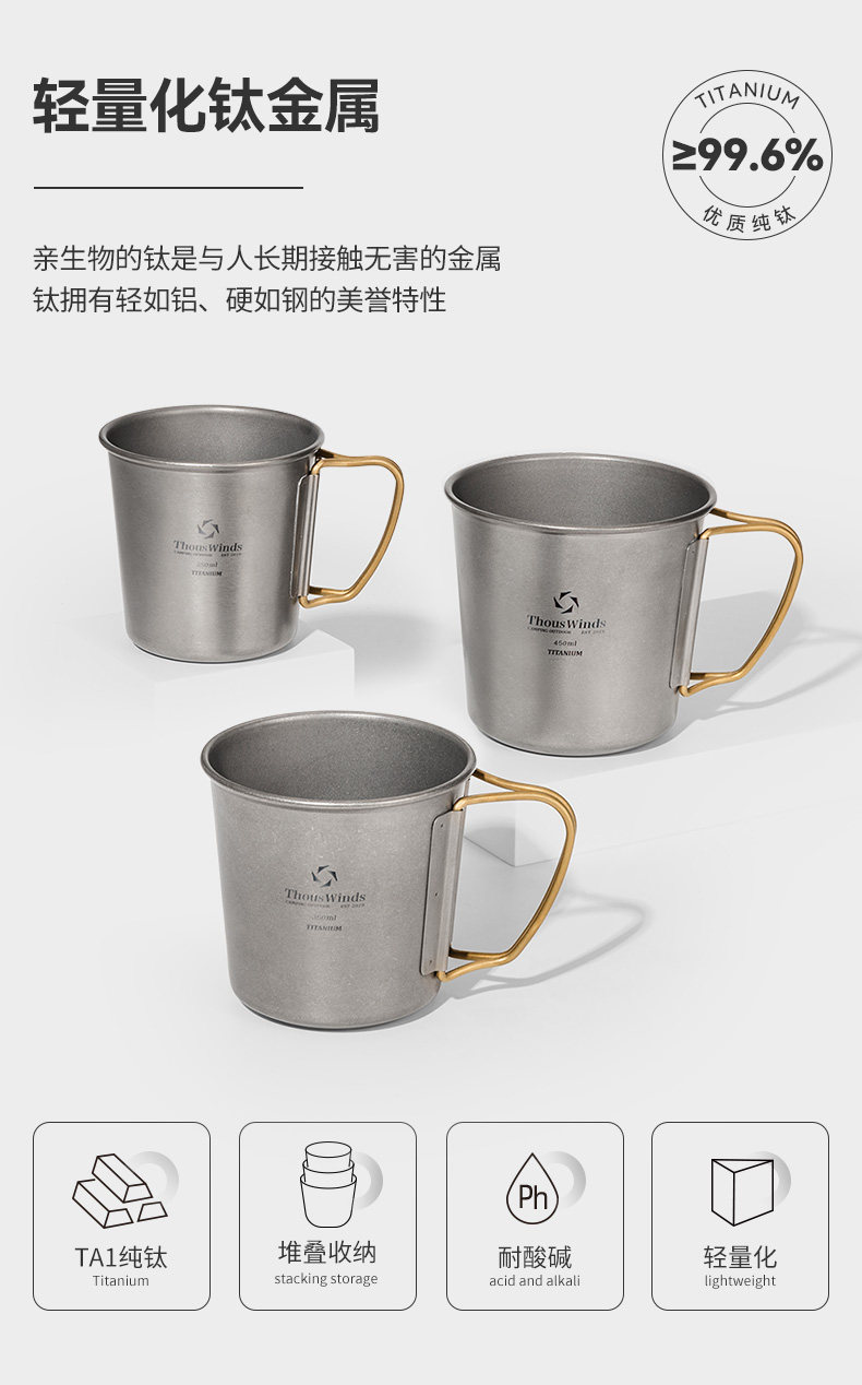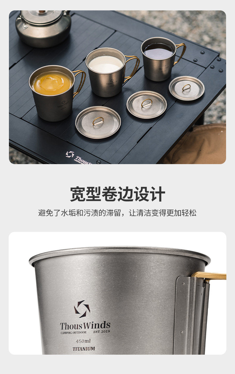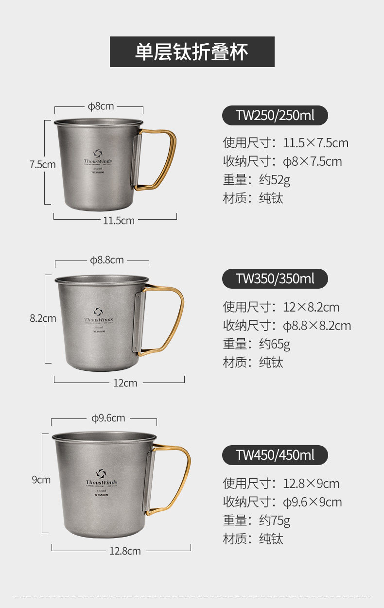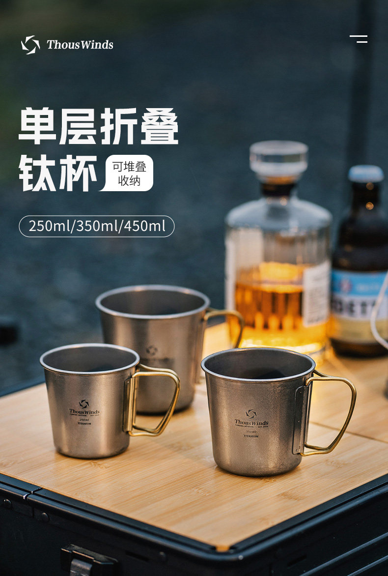 Thous Winds千風戶外單層折曡鈦杯野餐折曡鈦茶杯咖啡杯辦公水杯