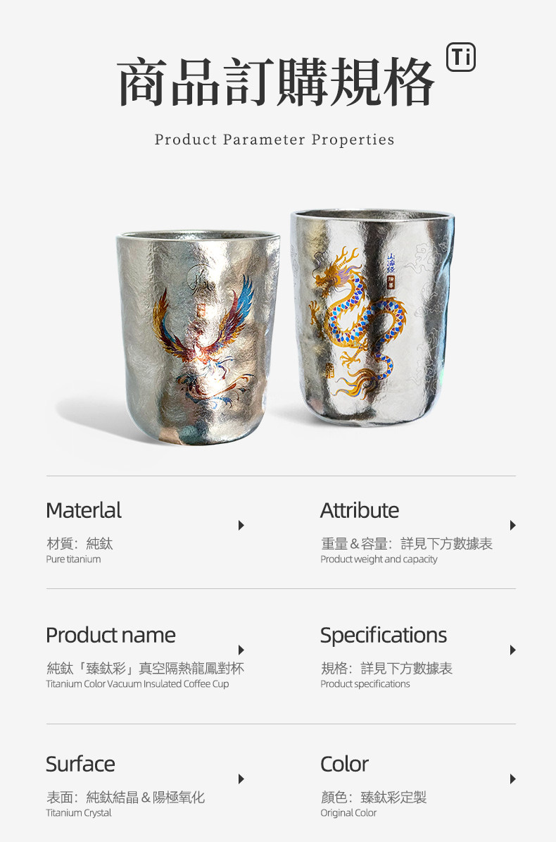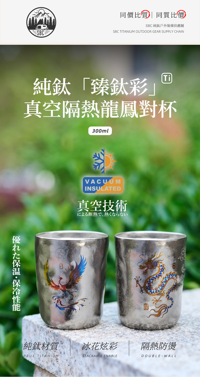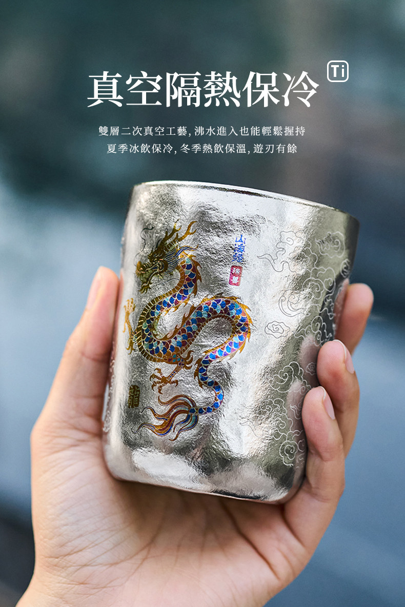 純鈦鳳凰彩繪杯雙層真空鈦杯保溫保冷冷飲杯龍鳳呈祥套杯可攜式水杯