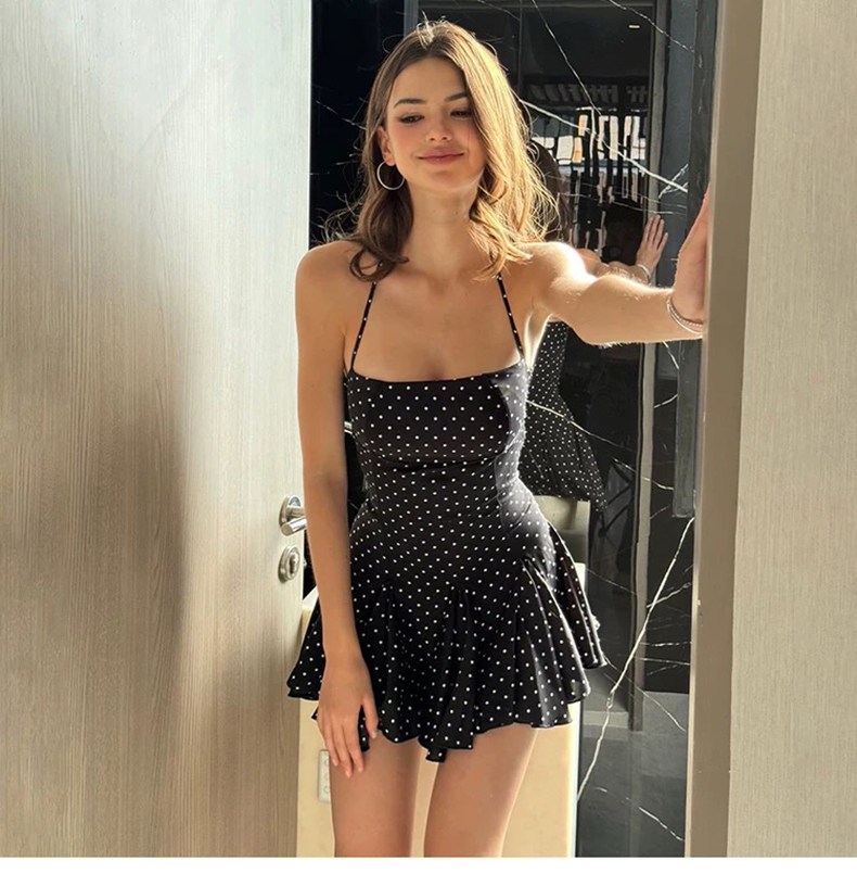 泳衣女純欲辣妹復古波點掛脖裙式連體遮肚顯瘦2026新款泡溫泉度假